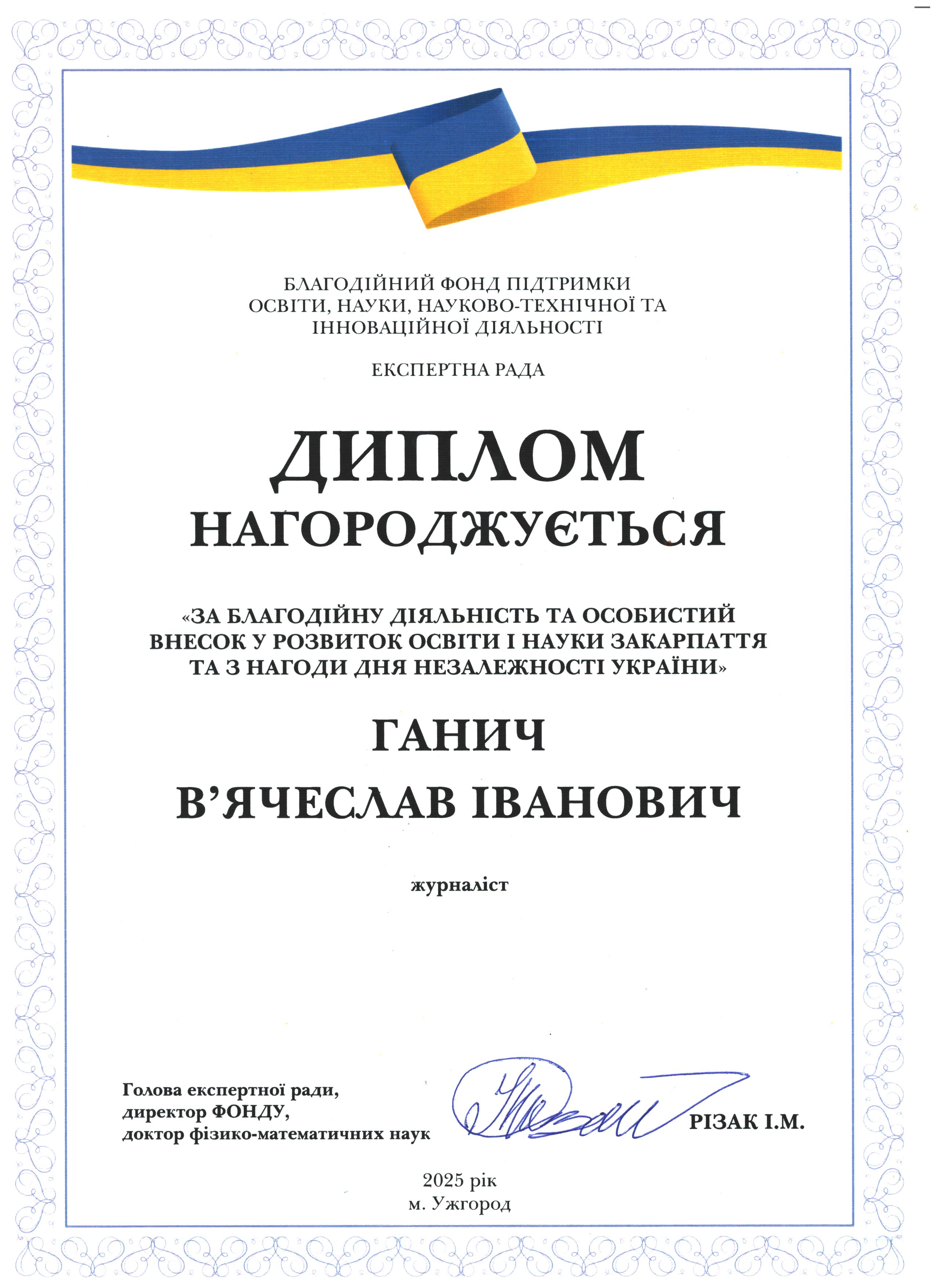 Дякуємо В'ячеславу Івановичу Ганичу за підтримку освіти і науки Закарпаття!