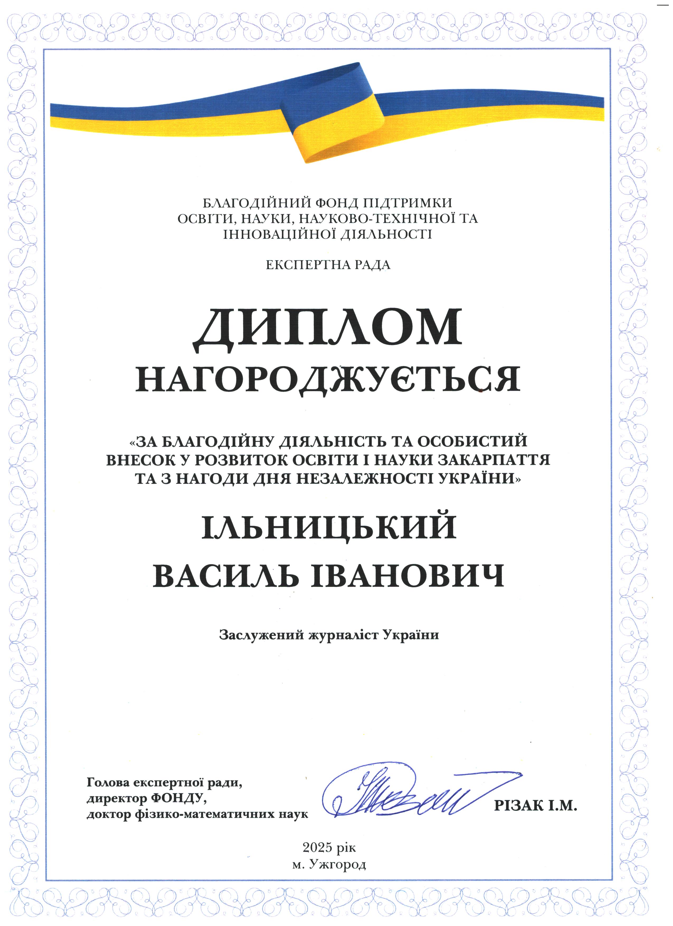 Дякуємо Василю Івановичу Ільницькому за підтримку освіти і науки Закарпаття!