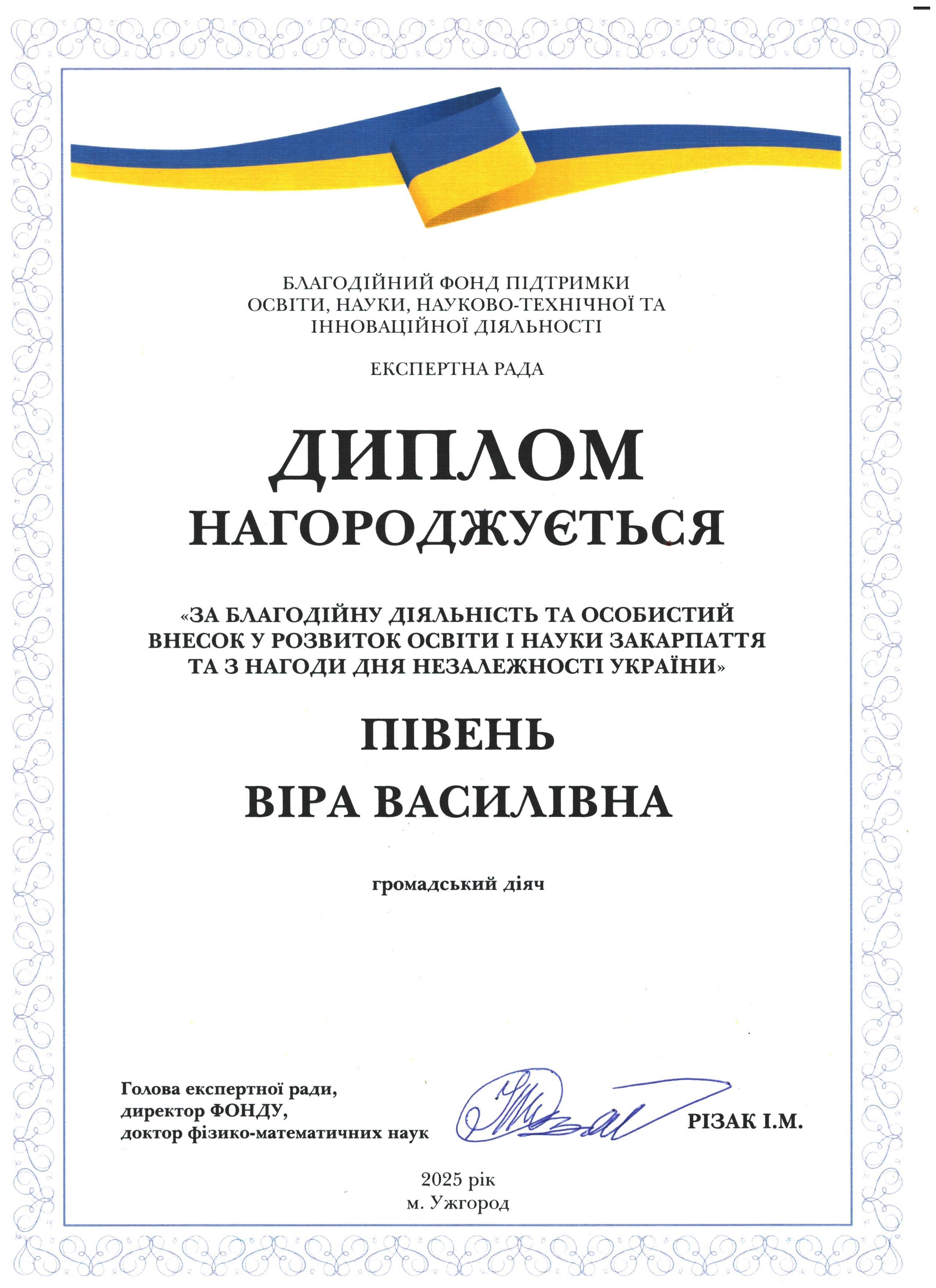 Дякуємо Вірі Василівні Півень за підтримку освіти і науки Закарпаття!