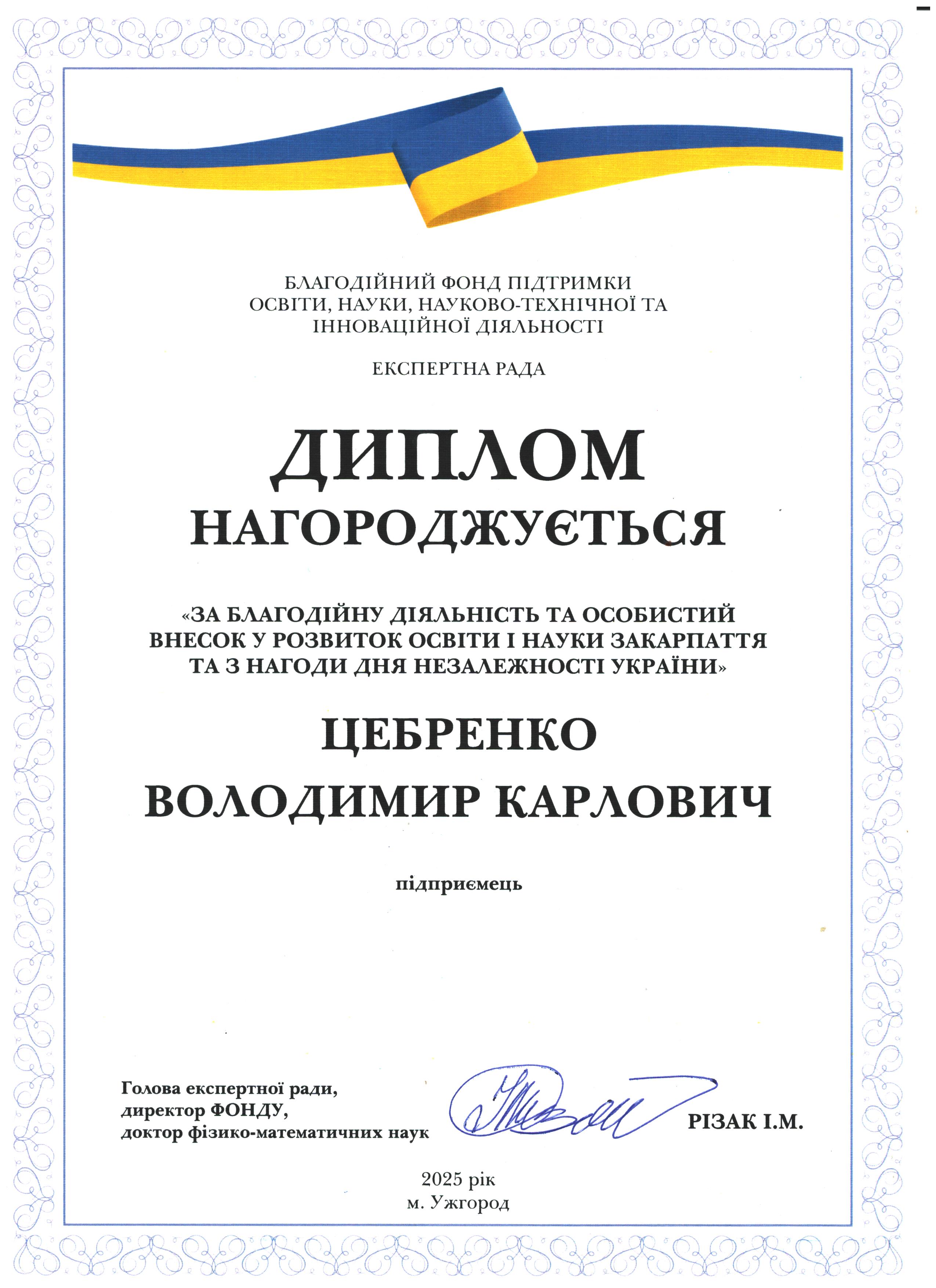 Дякуємо Володимиру Карловичу Цебренку за підтримку освіти і науки Закарпаття