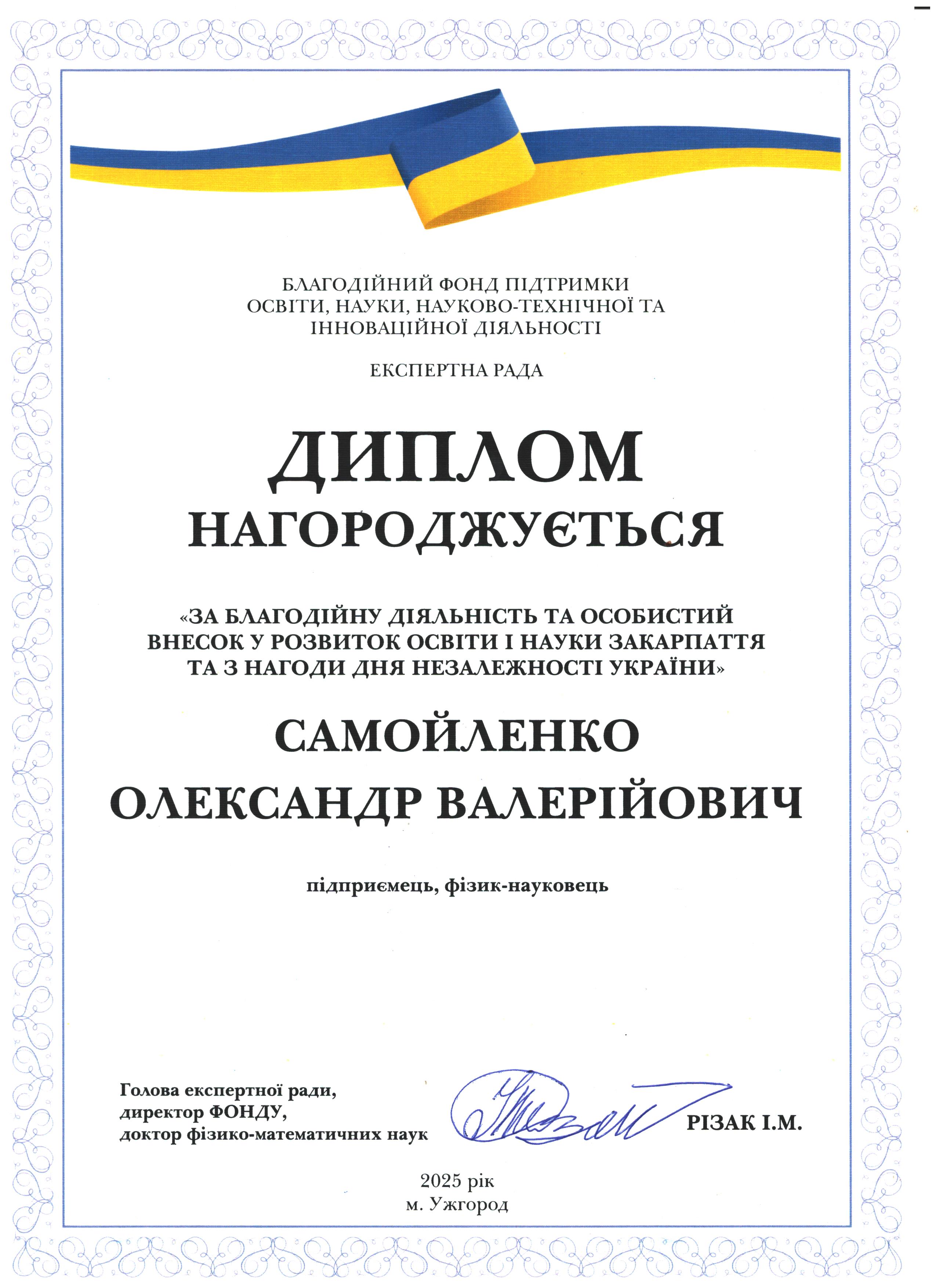 Дякуємо Олександру Валерійовичу Самойленку за підтримку освіти і науки Закарпаття!