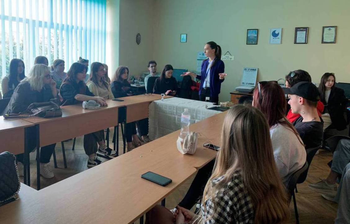 Захід на відділенні журналістики УжНУ відбувся з ініціативи місії Міжнародної організації з міграції в Україні У рамках зустрічей у пресклубі молодого журналіста «Медіаперспективи» 9 травня для студентів відділення журналістики влаштували психологічний тренінг.