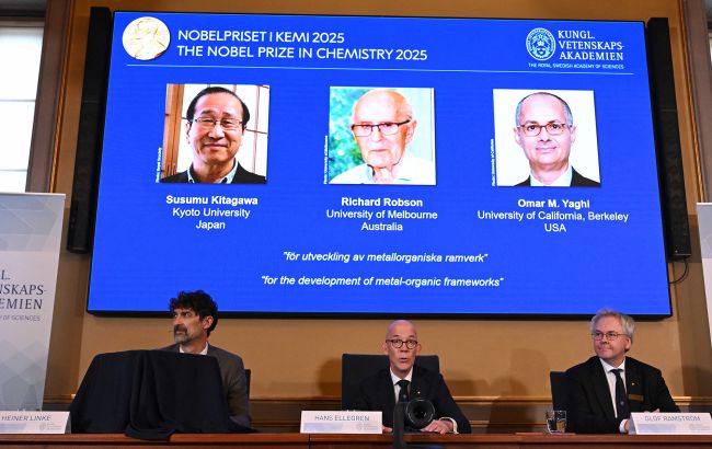 Нобелівський комітет у середу, 8 жовтня оголосив лауреатів премії у галузі хімії. Ними стали японський науковець науковці Сусуму Кітагава, британець Річард Робсон та американець Омар Ягхі. Про це повідомляє РБК-Україна з посиланням на прес-службу Фонду Нобеля.