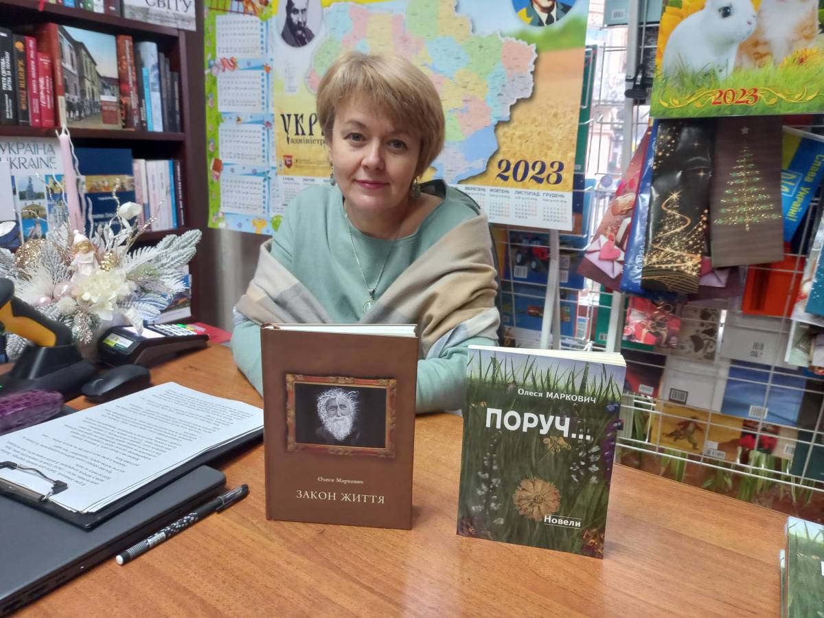 За книжковим прилавком вона презентувала збірки новел «Поруч» та «Закон життя». «Уявити собі не могла, що сидітиму тут, за прилавком, як учасниця цієї поважної книжкової акції. Для мене письменники, які брали в ній участь, були захмарними, недосяжними. Я не бачила себе серед них, – ділиться з присутніми пані Леся. – А рік тому випадок звів мене з Федором Шандором. Я зачитувала свої новели. Йому сподобалося, і він запросив мене взяти участь в акції. Дуже вдячна йому за цю можливість.
