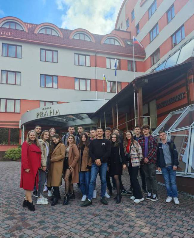 У жовтні 2022 р. здобувачі вищої освіти 2-го року навчання спеціальностей «Туризм» та «Готельно-ресторанна справа» ДВНЗ «УжНУ» у межах навчальних дисциплін «Організація туристичних послуг» (к.держ.упр. Кривенкова Р.Ю.), «Організація готельної справи» (к.філос.н. Світлинець О.В.) та «Організація ресторанної справи» (к.е.н. Сіра Е.О.) відвідали один з найкращих готельно-ресторанних комплексів Ужгорода, а саме готель «Прага».