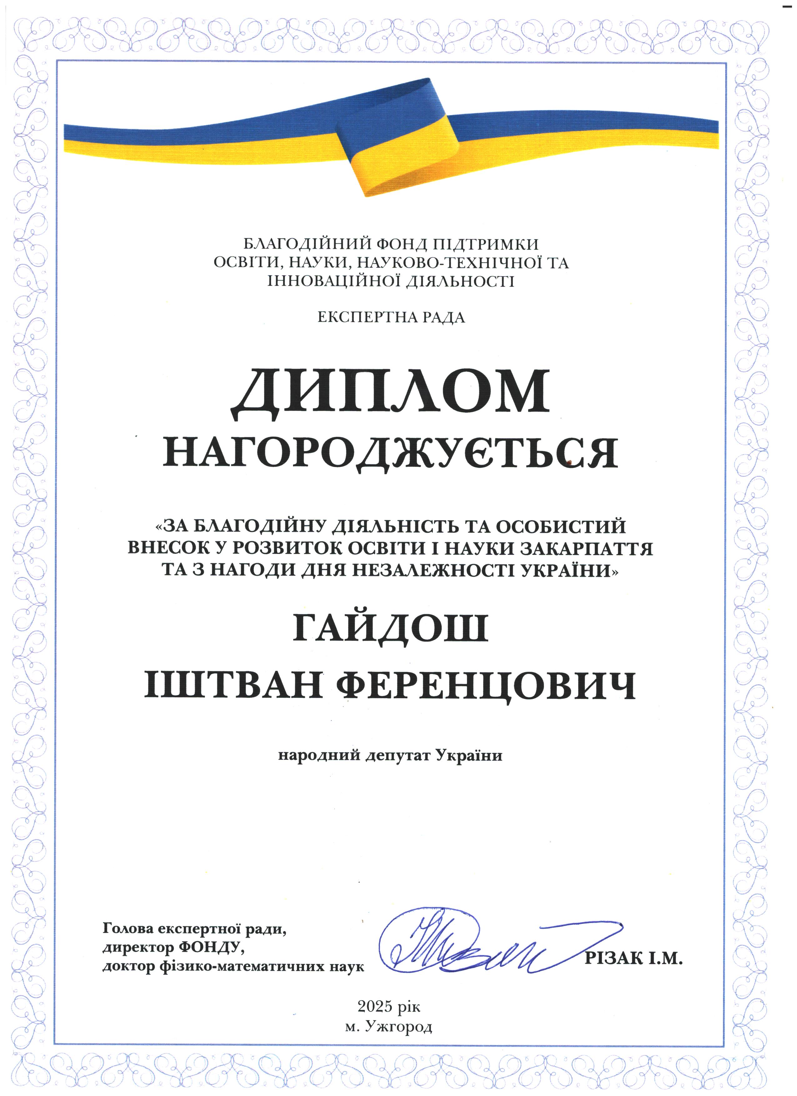 Дякуємо Іштвану Ференцовичу Гайдошу за підтримку освіти і науки Закарпаття!