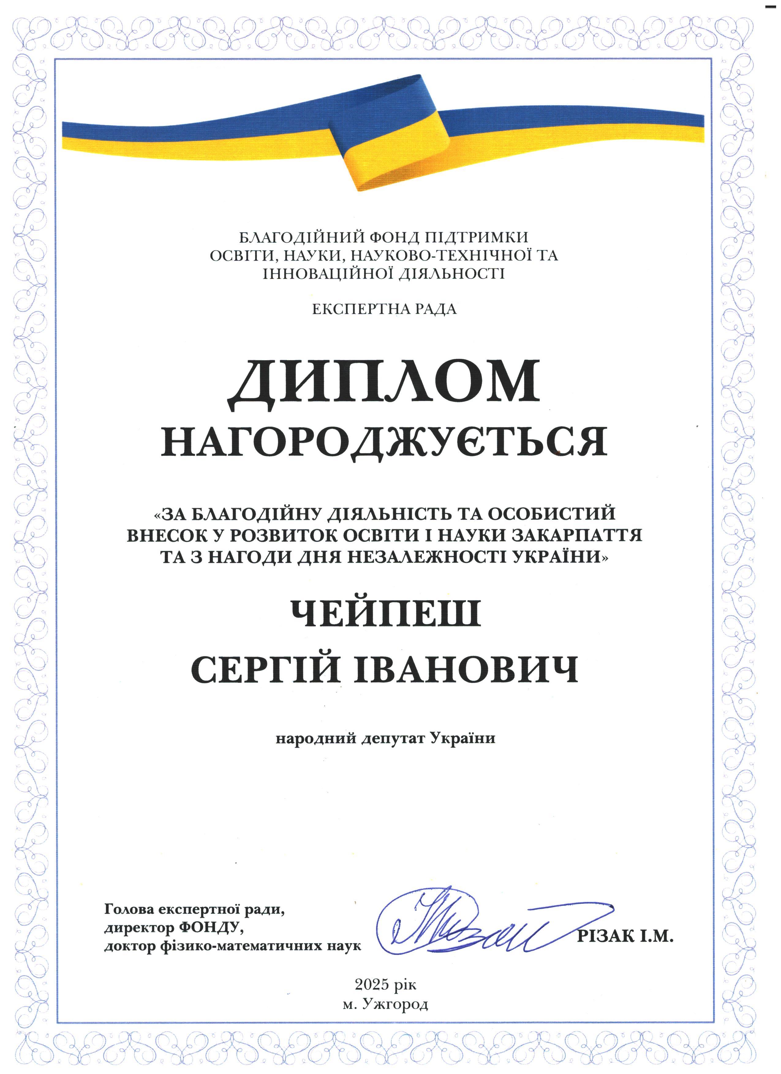 Дякуємо Сергію Івановичу Чейпешу за підтримку освіти і науки Закарпаття!