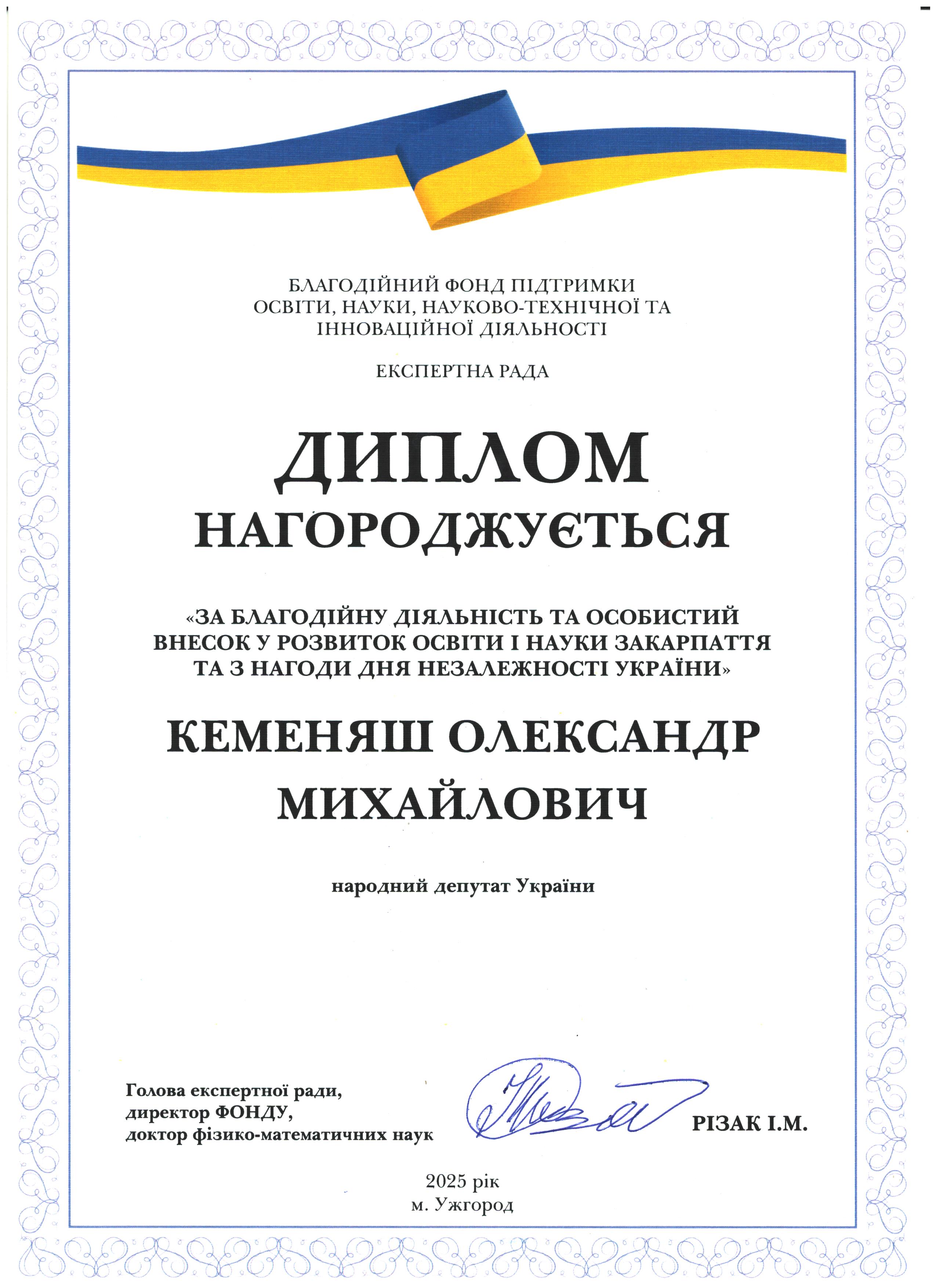 Дякуємо Олександру Михайловичу Кеменяшу за підтримку освіти і науки Закарпаття!