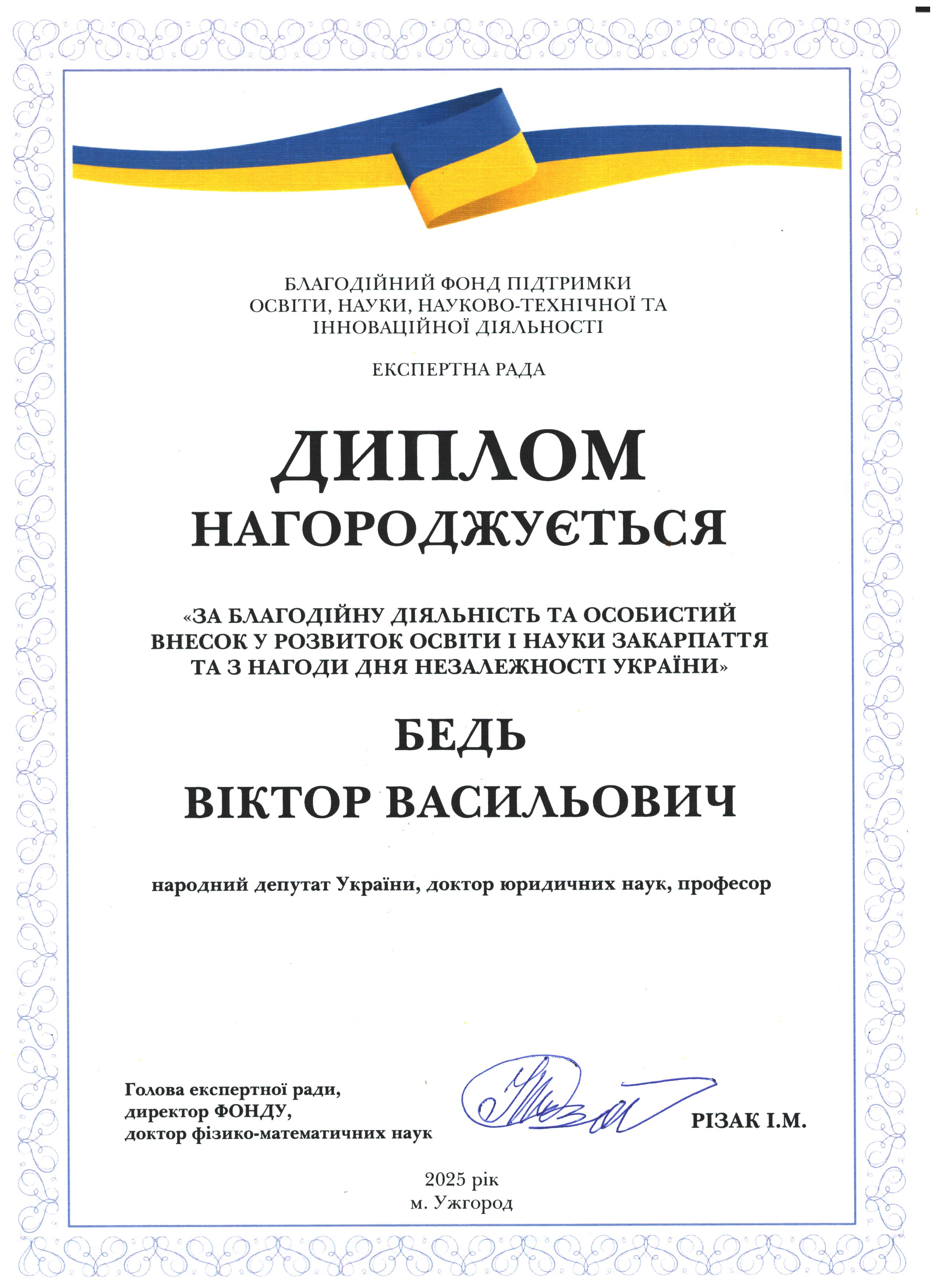 Дякуємо Віктору Васильовичу Бедю за підтримку освіти і науки Закарпаття!