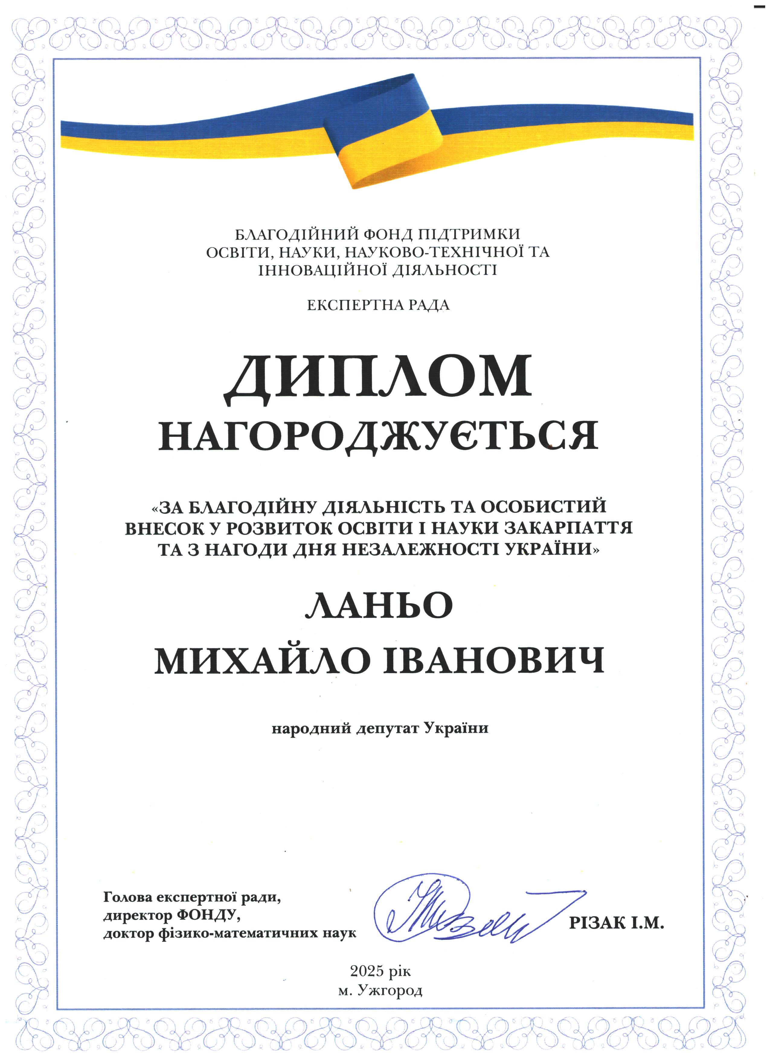 Дякуємо Михайлу Івановичу Ланьо за підтримку освіти і науки Закарпаття!