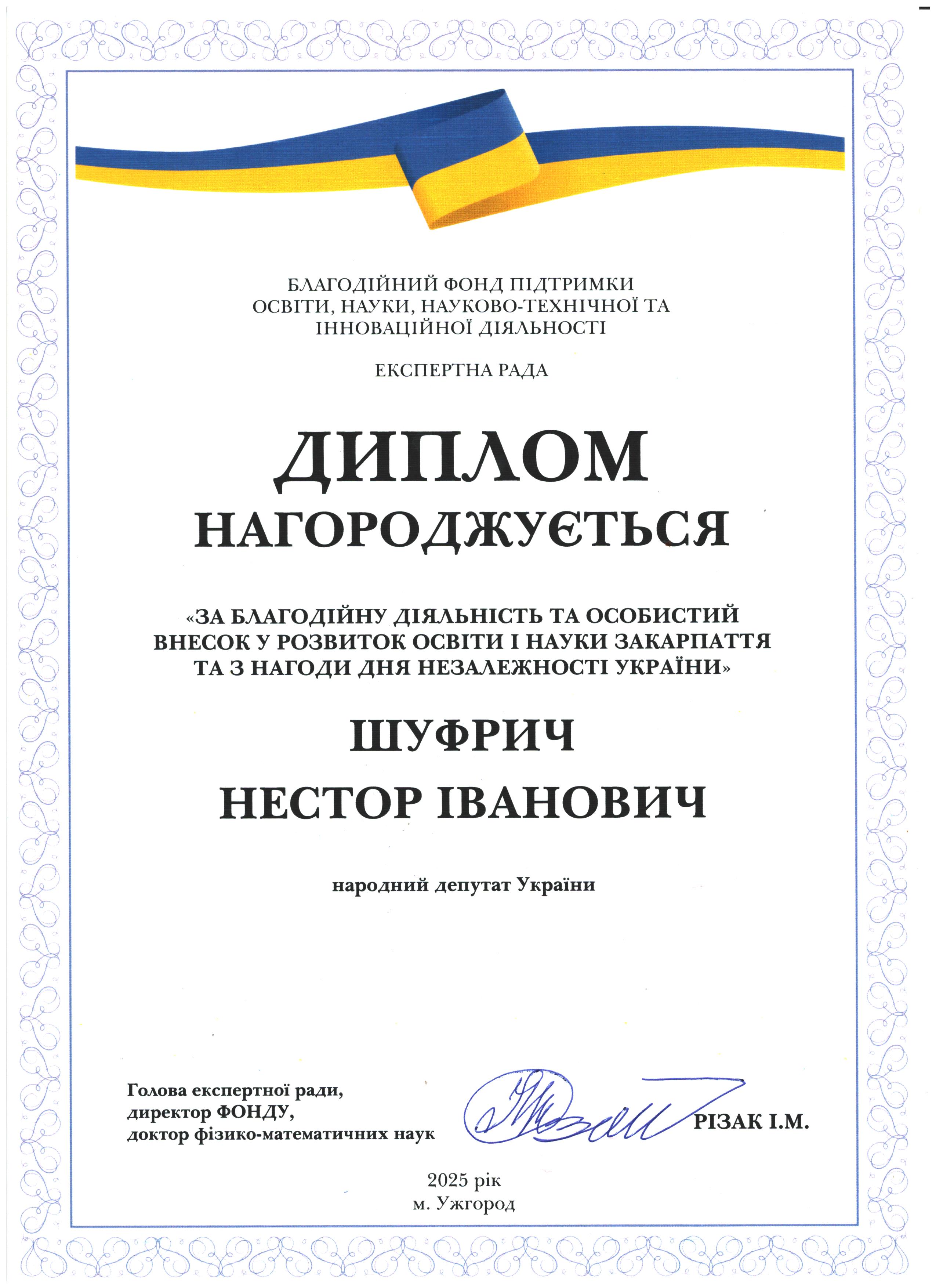Дякуємо Нестору Івановичу Шуфричу за підтримку освіти і науки Закарпаття!