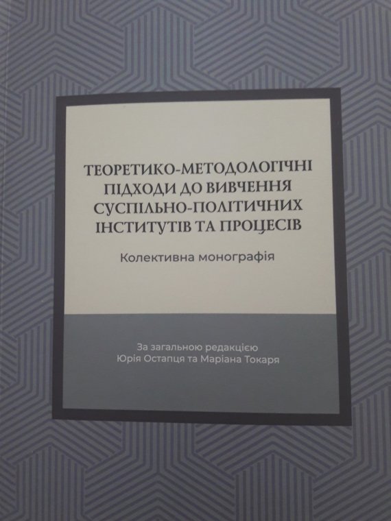 Теоретико-методологічні підходи до вивчення суспільно-політичних інститутів та процесів: колективна монографія / за заг. ред.: Юрія Остапця і Маріана Токаря; [авт. колект.: С. Асланов, І. Вегеш, М. Вегеш, А. Дербак, М. Зан, Г. Зеленько, Н. Кічера, А. Ключкович, М. Колодій, Г. Кумар, М. Лендьел, Ю. Остапець, А. Романюк, М. Токар, К. Червеняк, М. Шелемба, Мих. Шелемба]; Каф. політ. і держупр.; Ужгород. нац. ун-тет. Ужгород: Поліграфцентр «Ліра», 2022. 560 с.