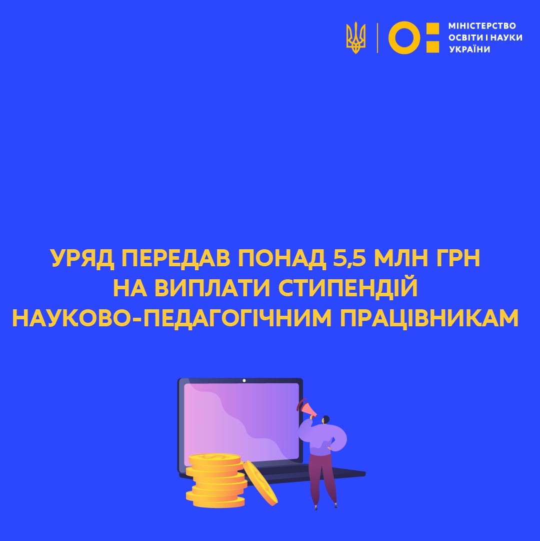 27 серпня 2022 року, Уряд ухвалив розпорядження КМУ щодо передання понад 5,5 млн грн до центральних органів виконавчої влади для виплати стипендії науково-педагогічним працівникам закладів вищої освіти, які не підпорядковані МОН.