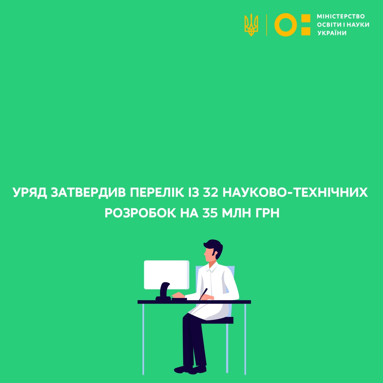 Документом передбачається затвердити перелік з 32 науково-технічних розробок, загальний обсяг фінансування яких у 2022 році становить 35 055,6 тис. грн.