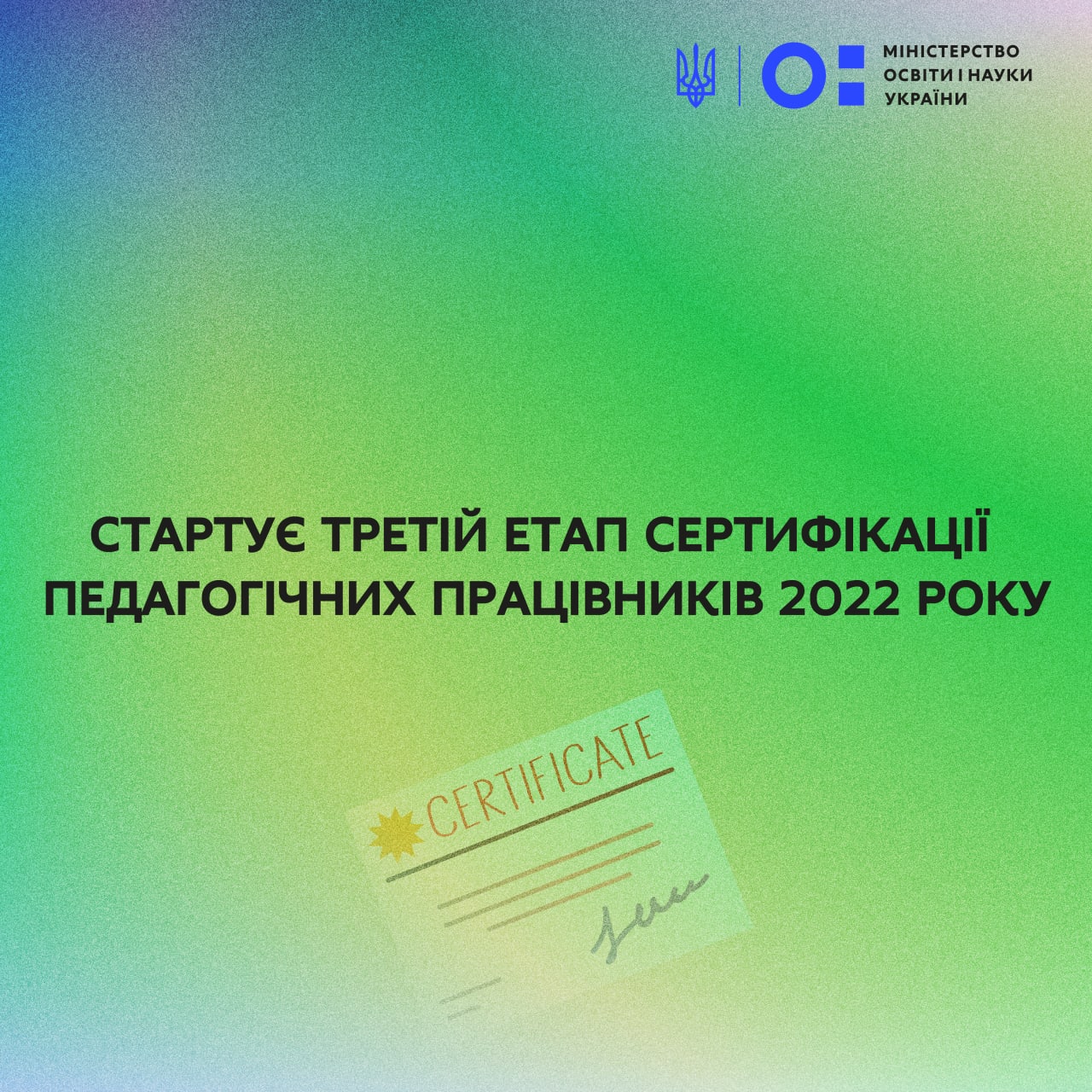 12 жовтня 2022 року розпочинається третій етап сертифікації педагогічних працівників 2022 року. На цьому етапі Державна служба якості освіти проаналізує практичний досвід роботи учасників сертифікації.