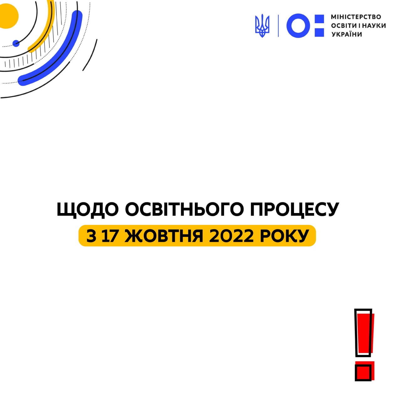 Міністр освіти і науки України Сергій Шкарлет звернувся до начальників ОВА, керівників департаментів (управлінь) освіти і науки та керівників закладів освіти щодо визначення формату навчання з 17 жовтня 2022 року.