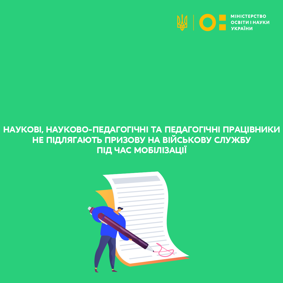 Законом встановлено, що не підлягають призову на військову службу під час мобілізації наукові, науково-педагогічні, педагогічні працівники, за умови роботи в наукових установах і організаціях, закладах вищої, фахової передвищої, професійної (професійно-технічної) чи загальної середньої освіти (за основним місцем роботи не менш як на 0,75 ставки).