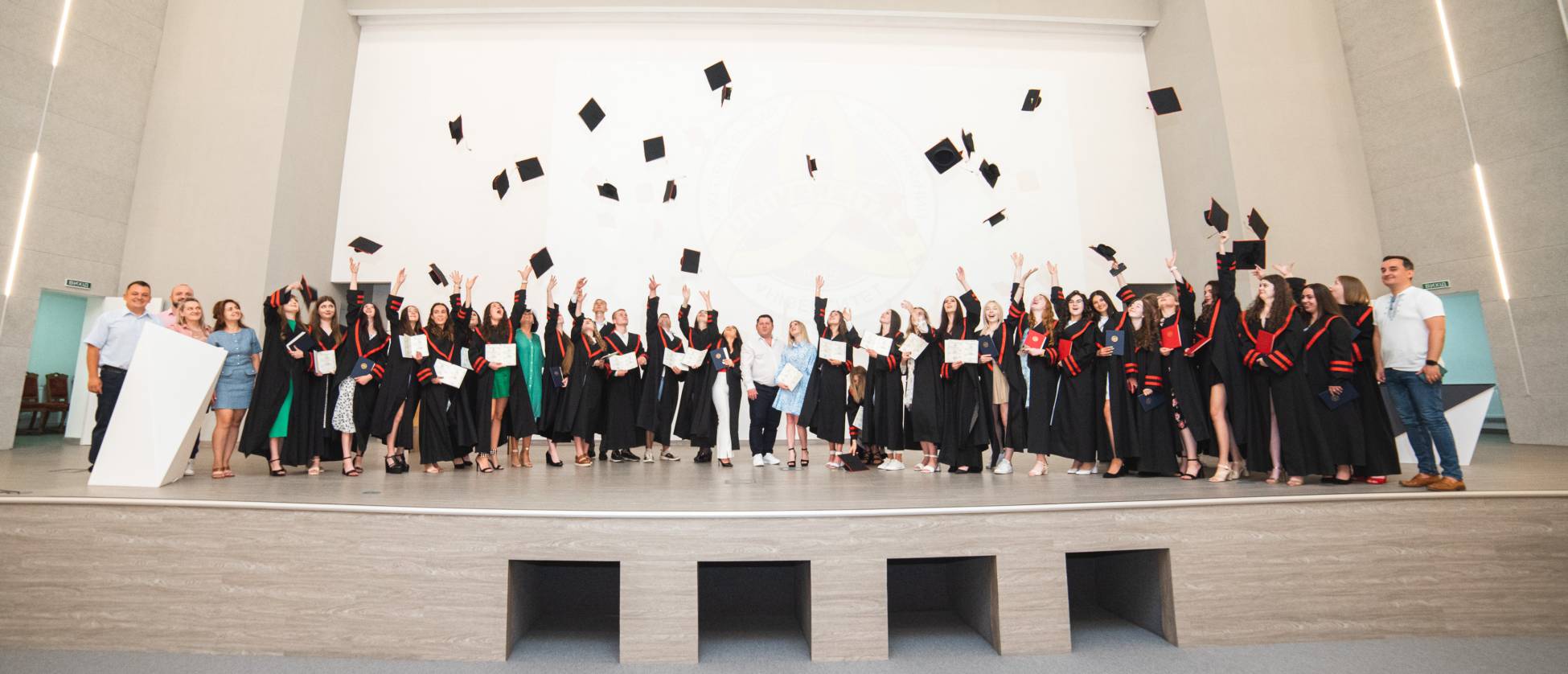 А Ігор Кіраль до подяк додав і акцент на деяких недоліках, над якими варто замислитися й попрацювати всім. «Є речі, які потрібно сказати тут і тепер. Бо ми живемо у світі, де другого шансу може не бути. То чому так багато «звичок» залишаються незмінними навіть після 24 лютого? Чому ми виправдовуємо багато речей тим, що десь в Україні чи росії ще гірше, мовляв, наші батьки так жили, ми так живемо і всі так живуть? Нас це не має хвилювати. Якби колись одна істота не вийшла з води, то ніколи б нас не існувало.Мене хвилює моя країна, моя мала батьківщина, мій університет і наша доля. Я дякую УжНУ за те, якою людиною я став і які знання здобув. Разом обов’язково переможемо», — завершив свою промову випускник.