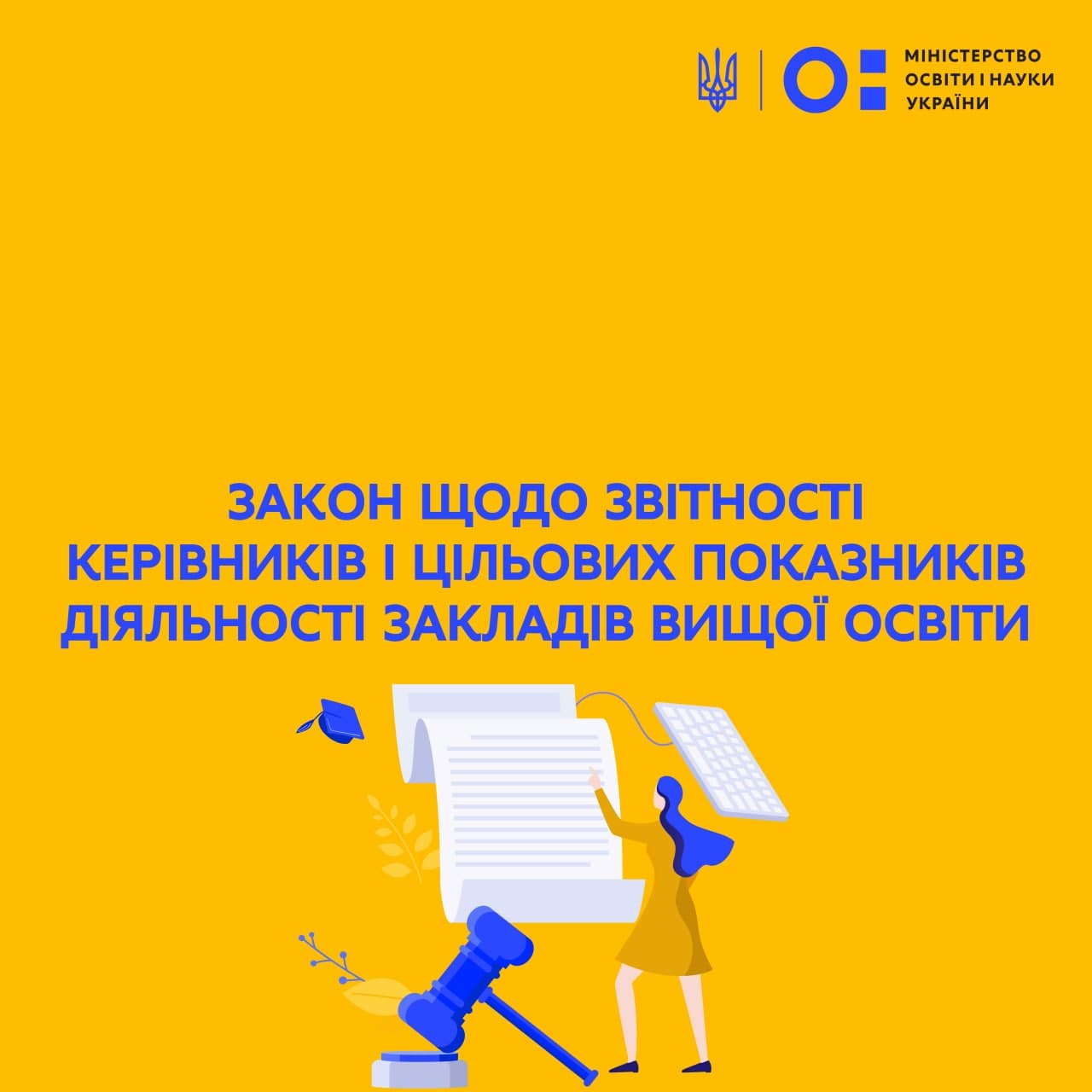 Зміни до статей 34 та 79 Закону «Про вищу освіту»: Закон набирає чинності через три місяці з дня оприлюднення. щорічний звіт керівника закладу вищої освіти повинен містити інформацію про рівень досягнення цільових показників діяльності ЗВО, визначених контрактом (станом на 31 грудня року, за який складається звіт); звіт підлягатиме внесенню до Єдиної державної електронної бази з питань освіти та буде оприлюднюватися в Реєстрі суб′єктів освітньої діяльності Єдиної державної електронної бази з питань освіти, а також на офіційному сайті закладу.