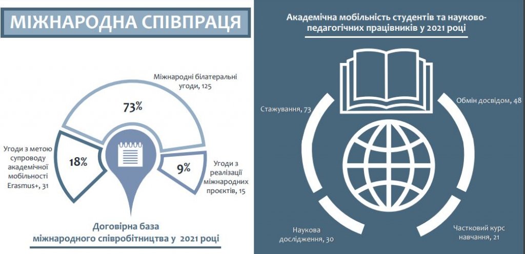 Також науковцями університету у 2021 році опубліковано 1370 наукових статей та 1246 тез доповідей на наукових конференціях.