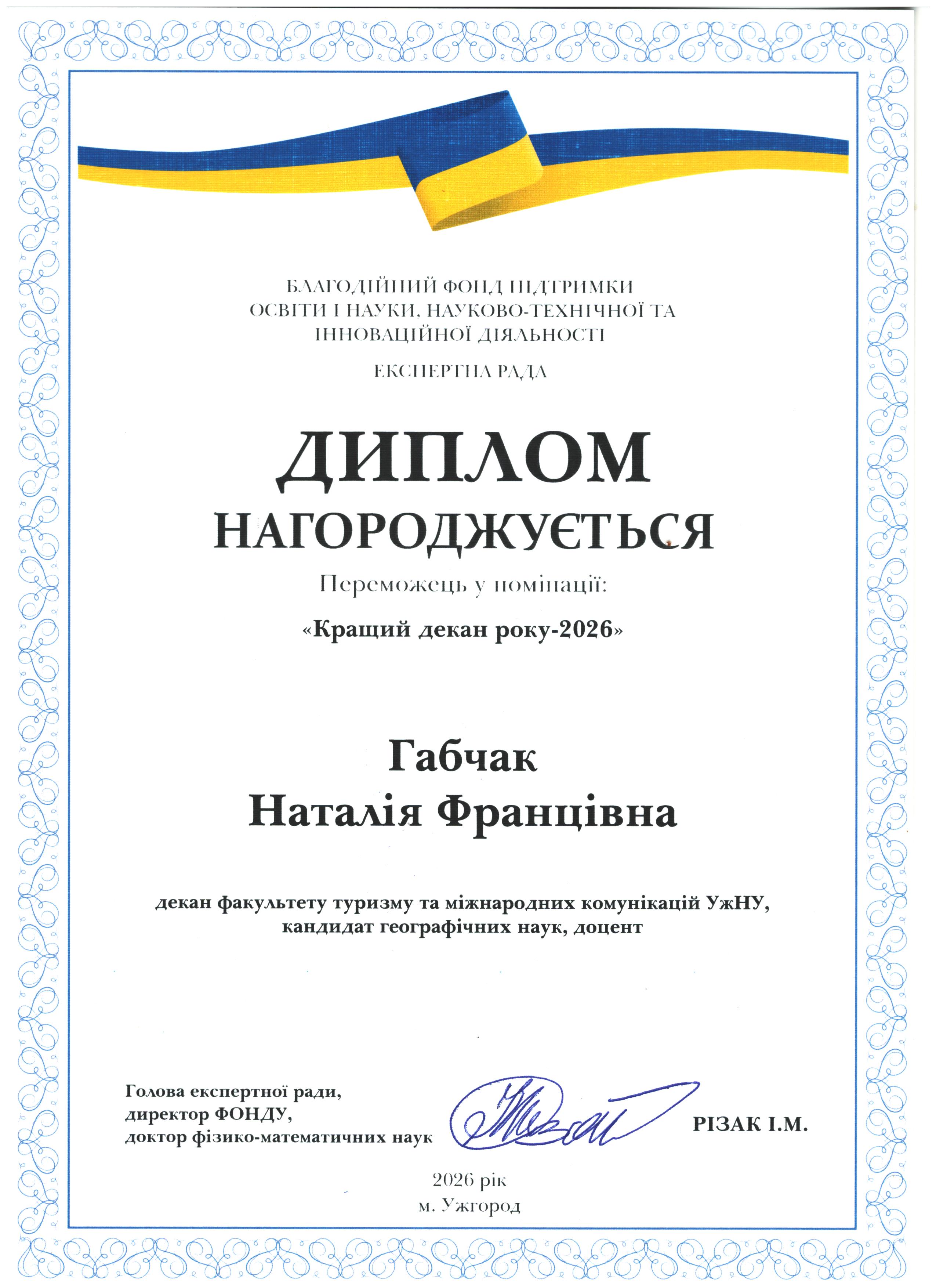 Вітаємо Наталію Францівну Габчак з перемогою у номінації "Кращий декан року -2026"