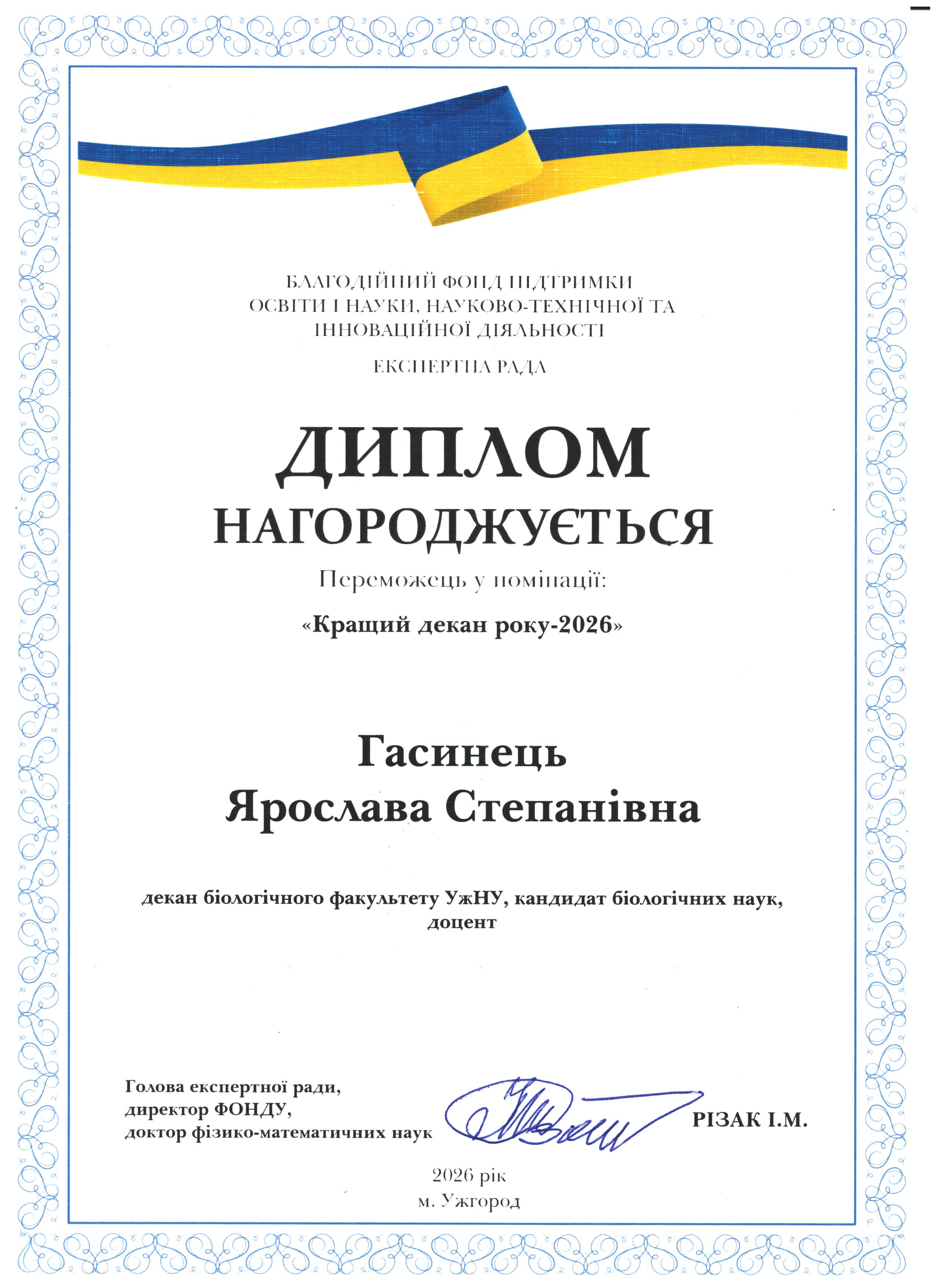Вітаємо Ярославу Степанівну Гасинець з перемогою у номінації "Кращий декан року -2026"
