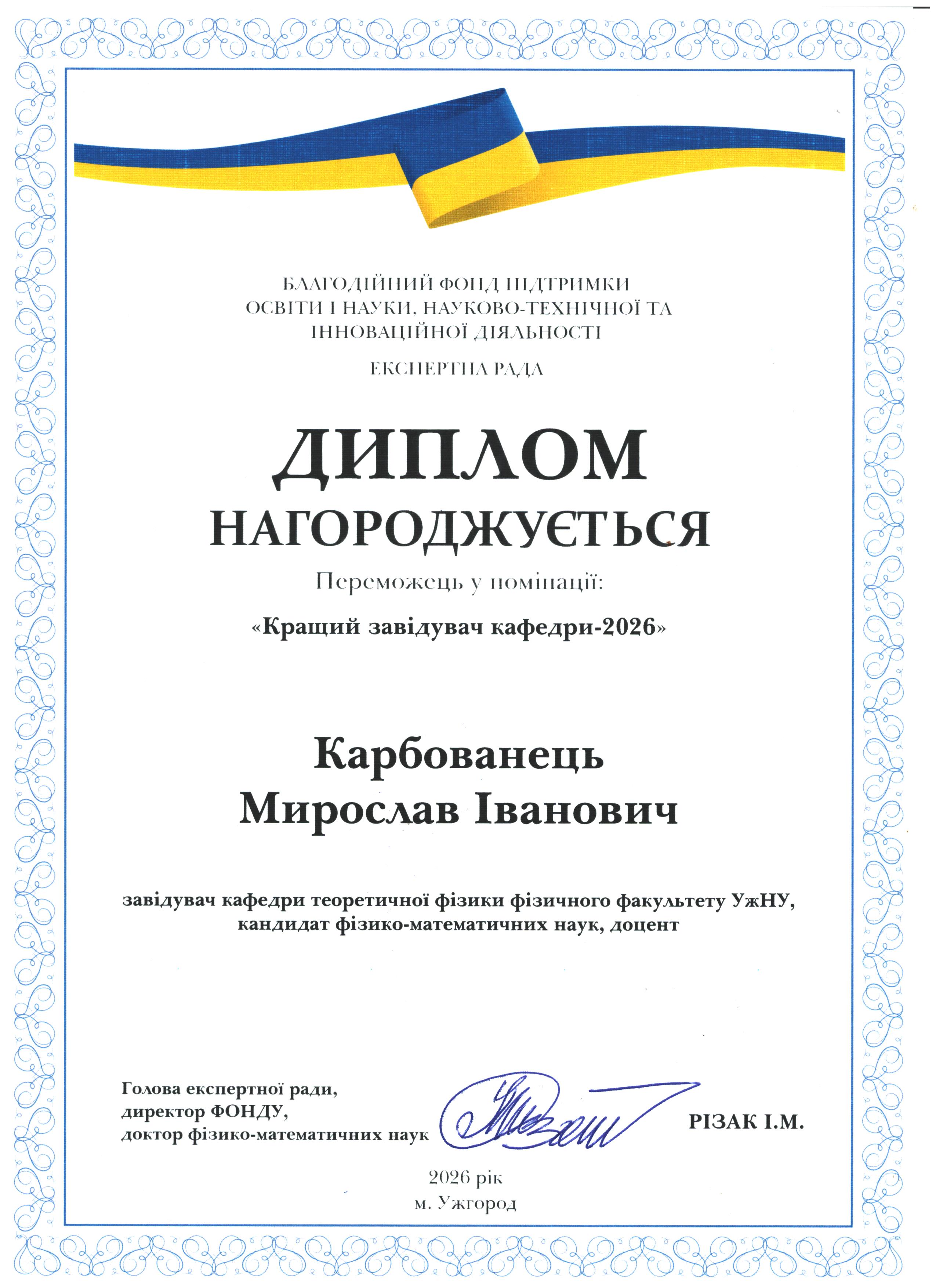 Вітаємо Мирослава Івановича Карбованця з перемогою у номінації "Кращий завідувач кафедри -2026"