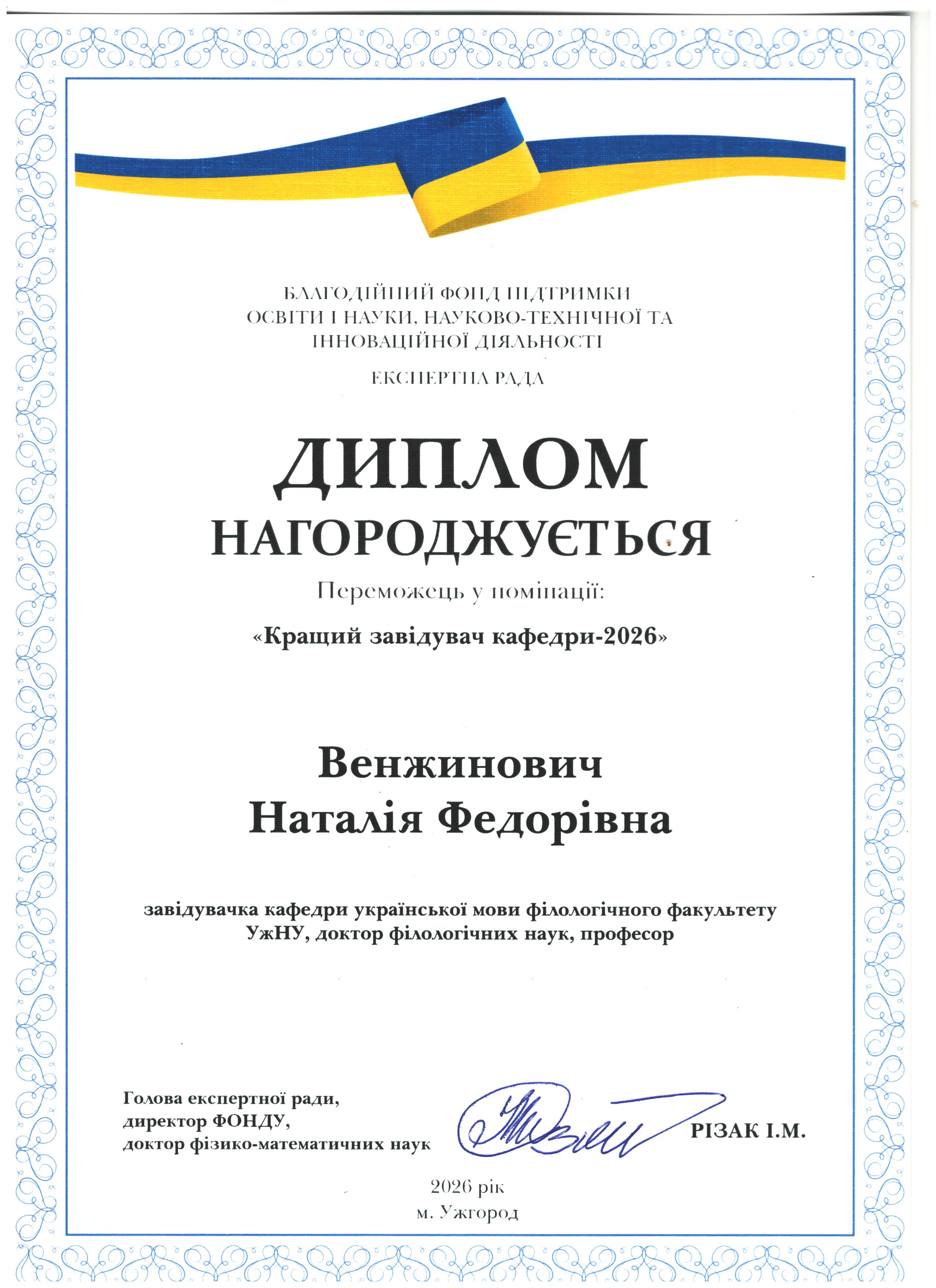 Вітаємо Наталію Федорівну Венжинович з перемогою у номінації "Кращий завідувач кафедри -2026"