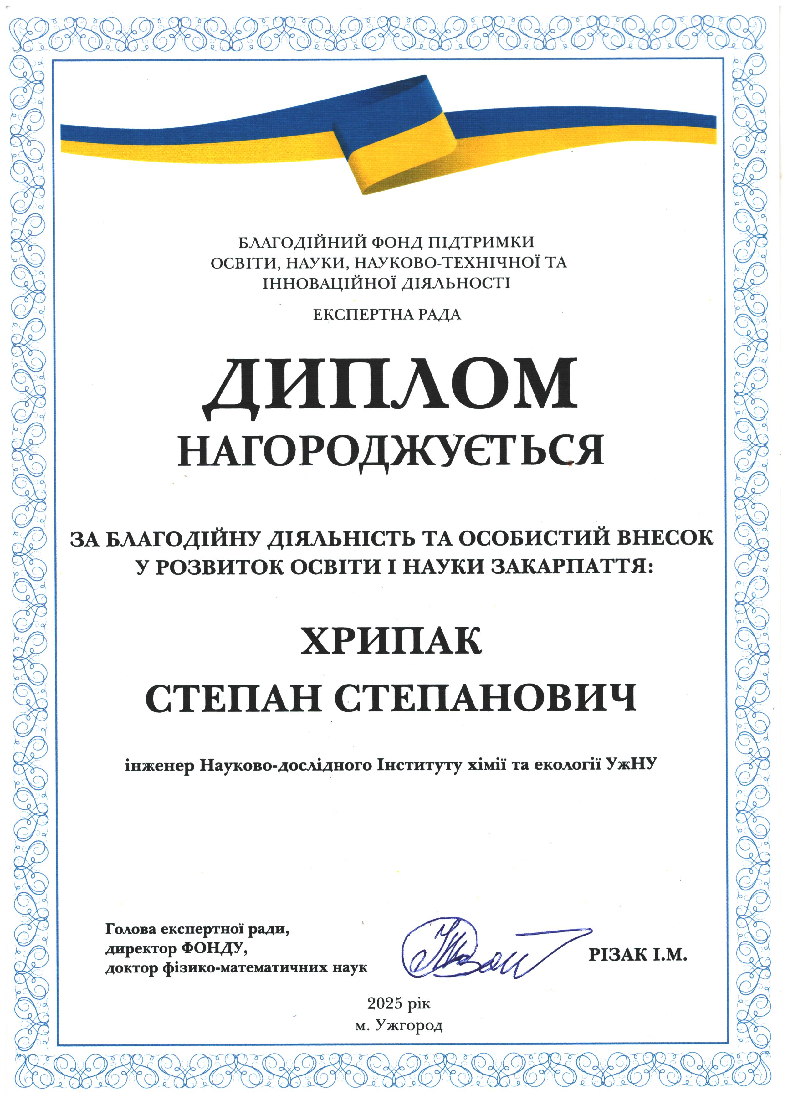 Дякуємо Степану Степановичу Хрипаку за допомогу у розвитку науки та освіти Закарпаття!