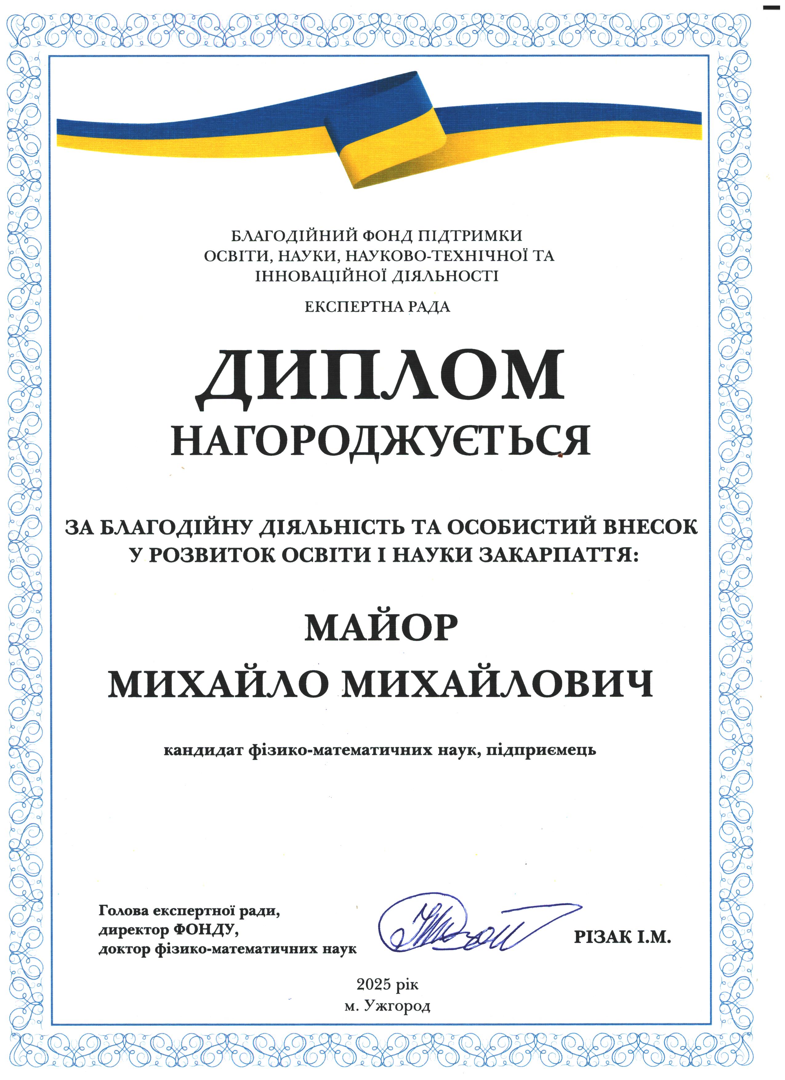 Дякуємо Михайлу Михайловичу Майору за допомогу у розвитку науки та освіти Закарпаття!