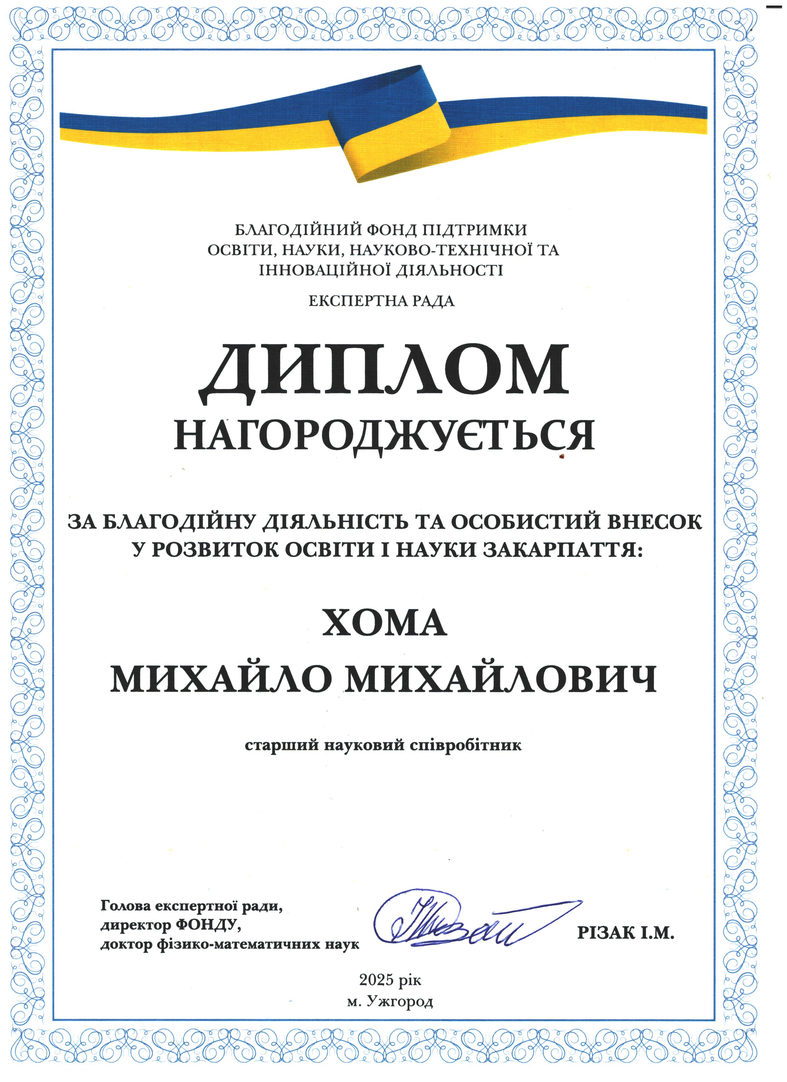 Дякуємо Михайлу Михайловичу Хомі за допомогу у розвитку науки та освіти Закарпаття!