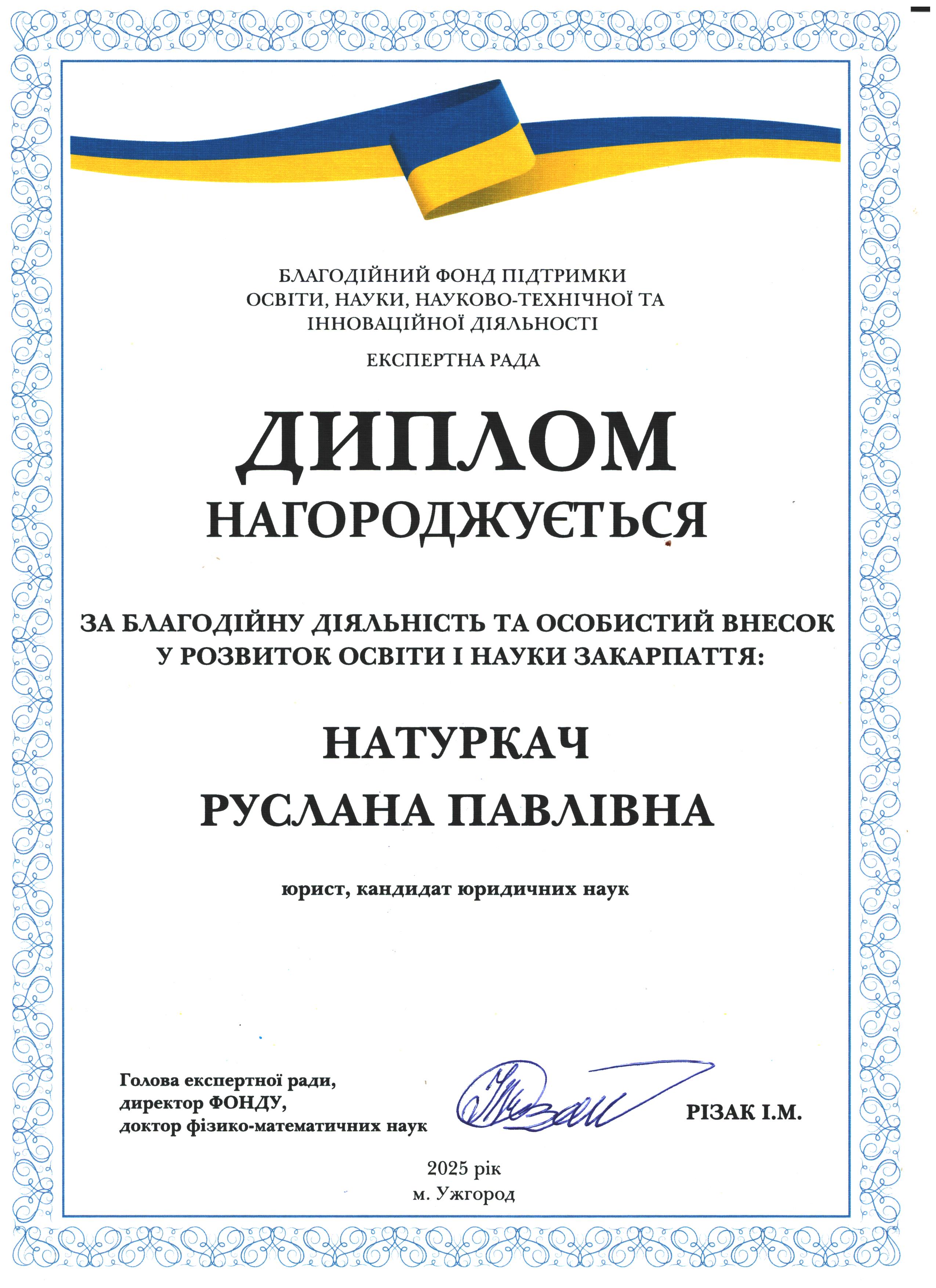 Дякуємо Руслані Павлівні Натуркач за допомогу у розвитку науки та освіти Закарпаття!