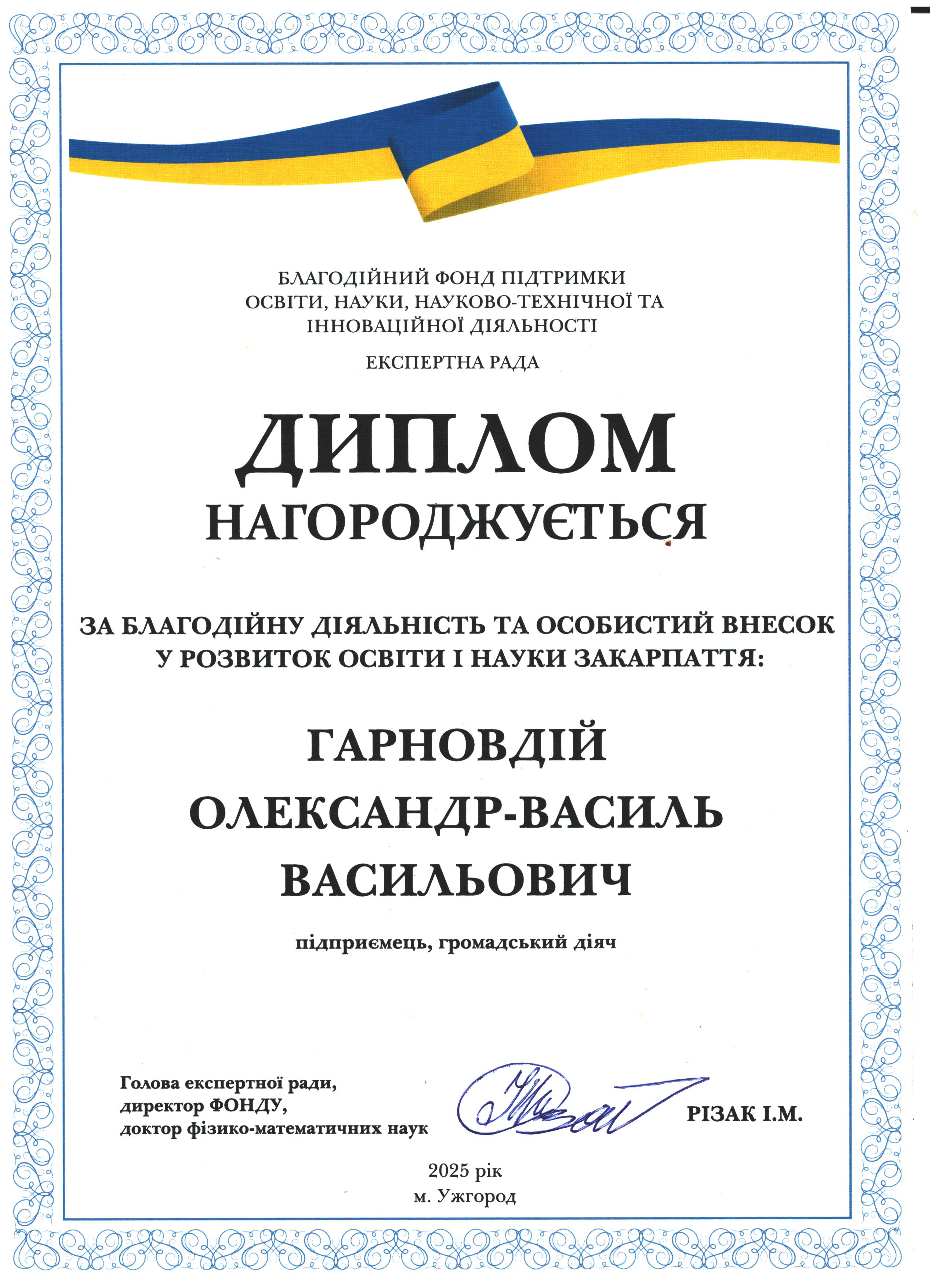 Дякуємо Олександру-Василю Васильовичу Гарновдію за допомогу у розвитку науки та освіти Закарпаття!