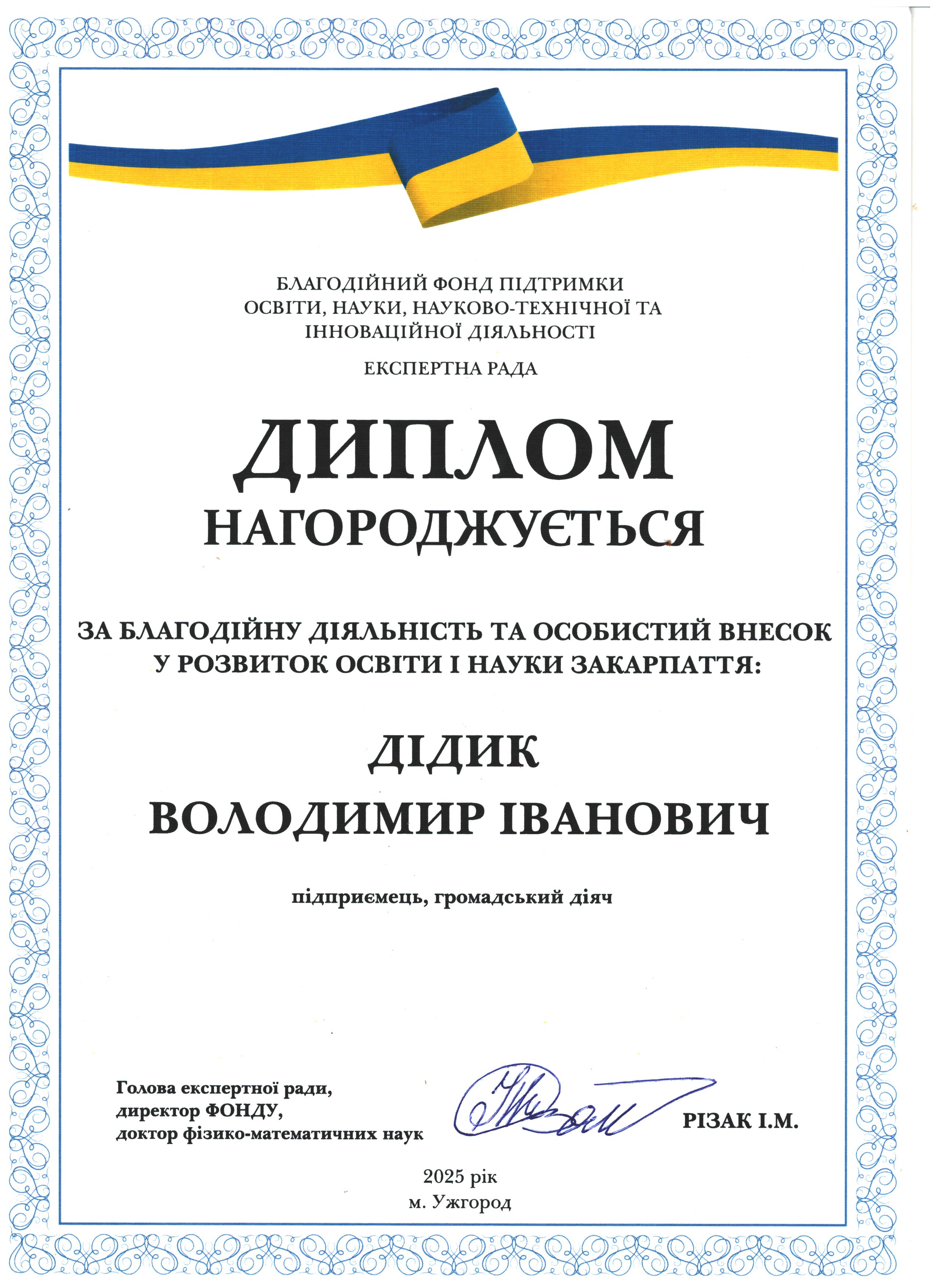 Дякуємо Володимиру Івановичу Дідику за допомогу у розвитку науки та освіти Закарпаття!