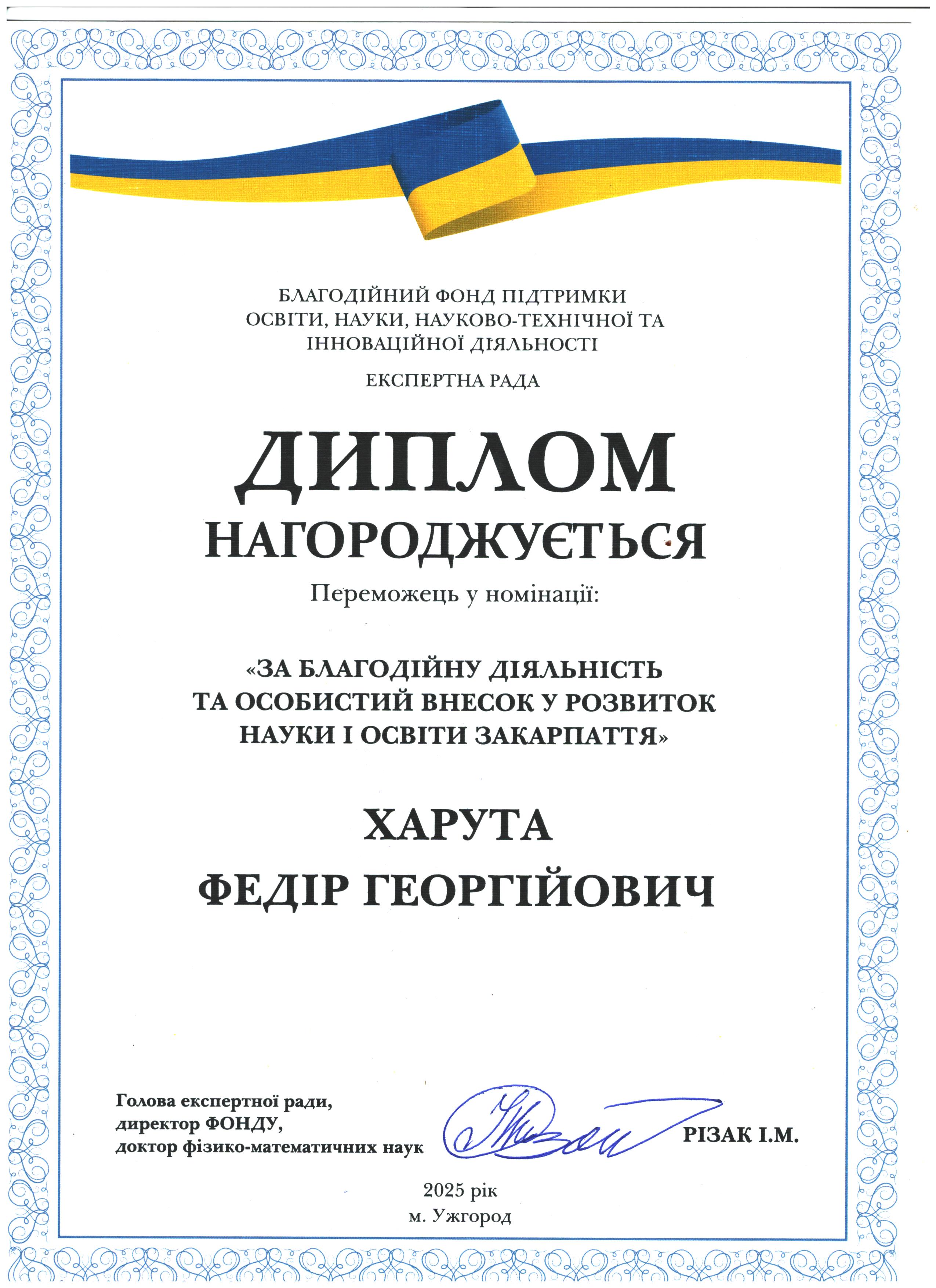 Дякуємо Федору Георгійовичу Харуті за багаторічну підтримку освіти і науки Закарпаття!