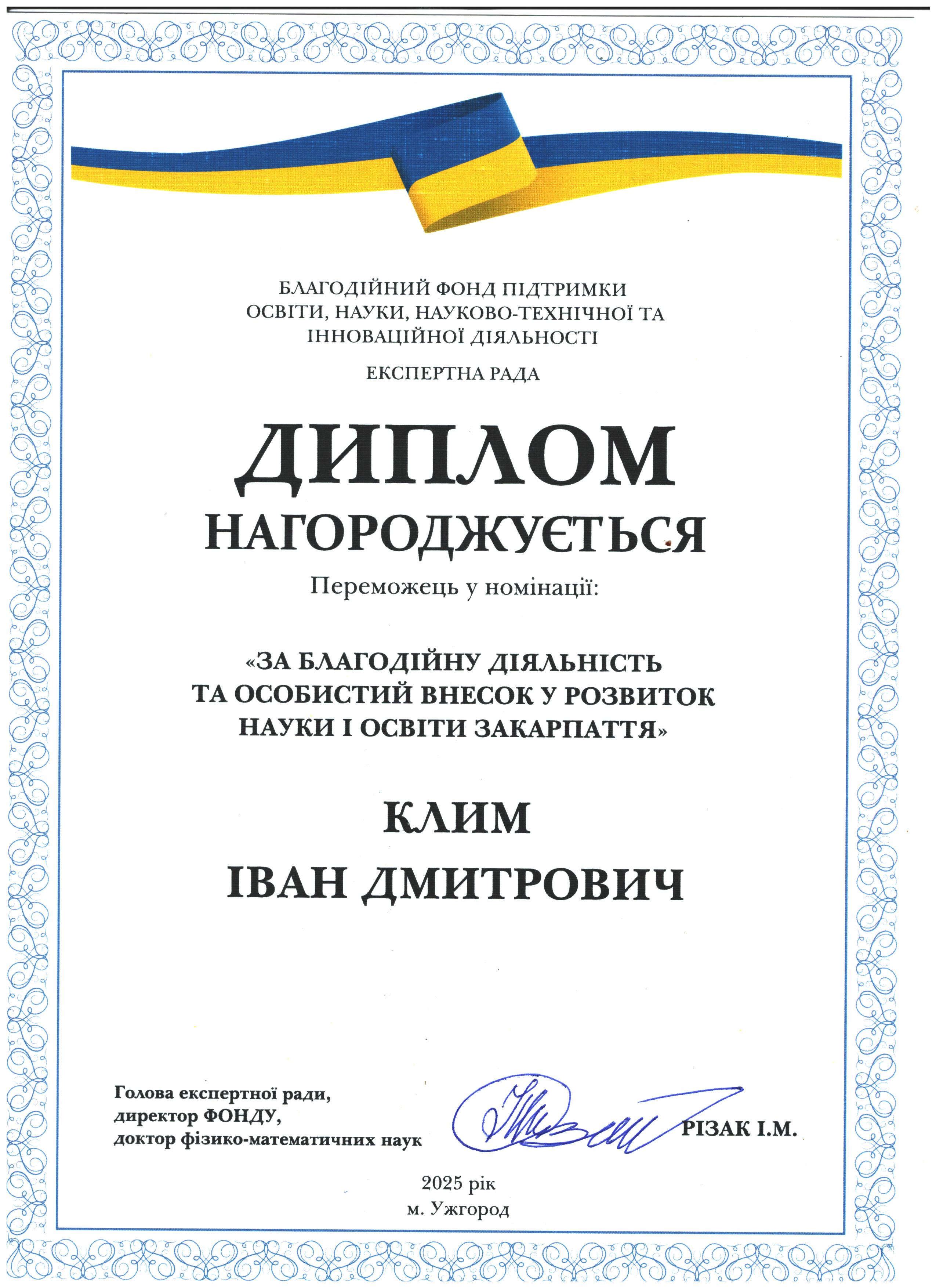 Дякуємо Івану Дмитровичу Климу за багаторічну підтримку освіти і науки Закарпаття!