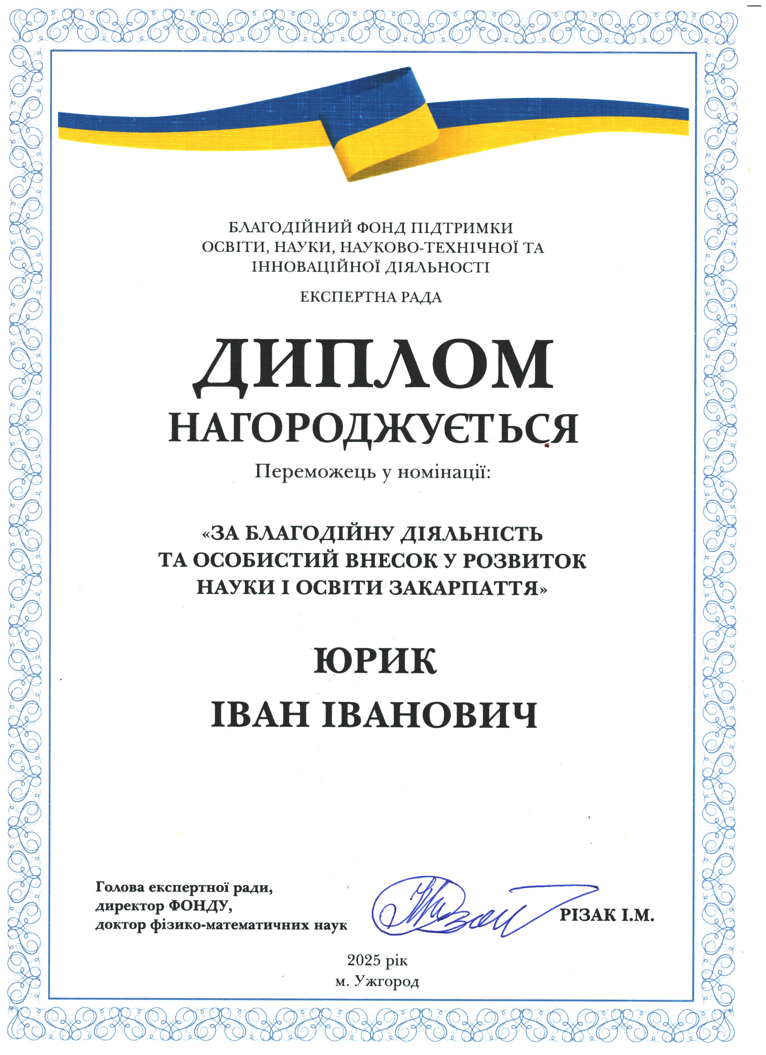 Дякуємо Івану Івановичу Юрику за багаторічну підтримку освіти і науки Закарпаття!