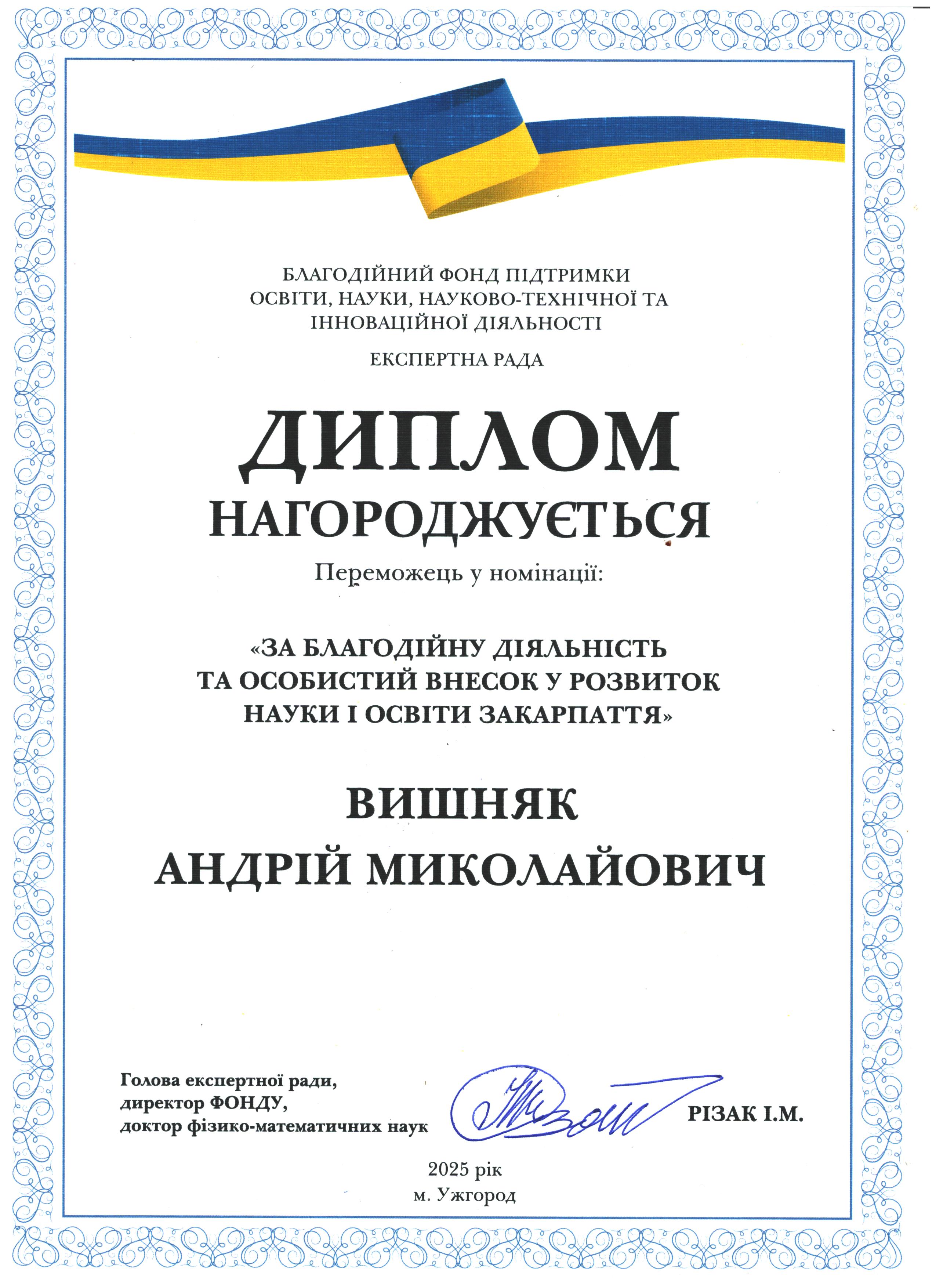 Дякуємо Андрію Миколайовичу Вишняку за багаторічну підтримку освіти і науки Закарпаття!