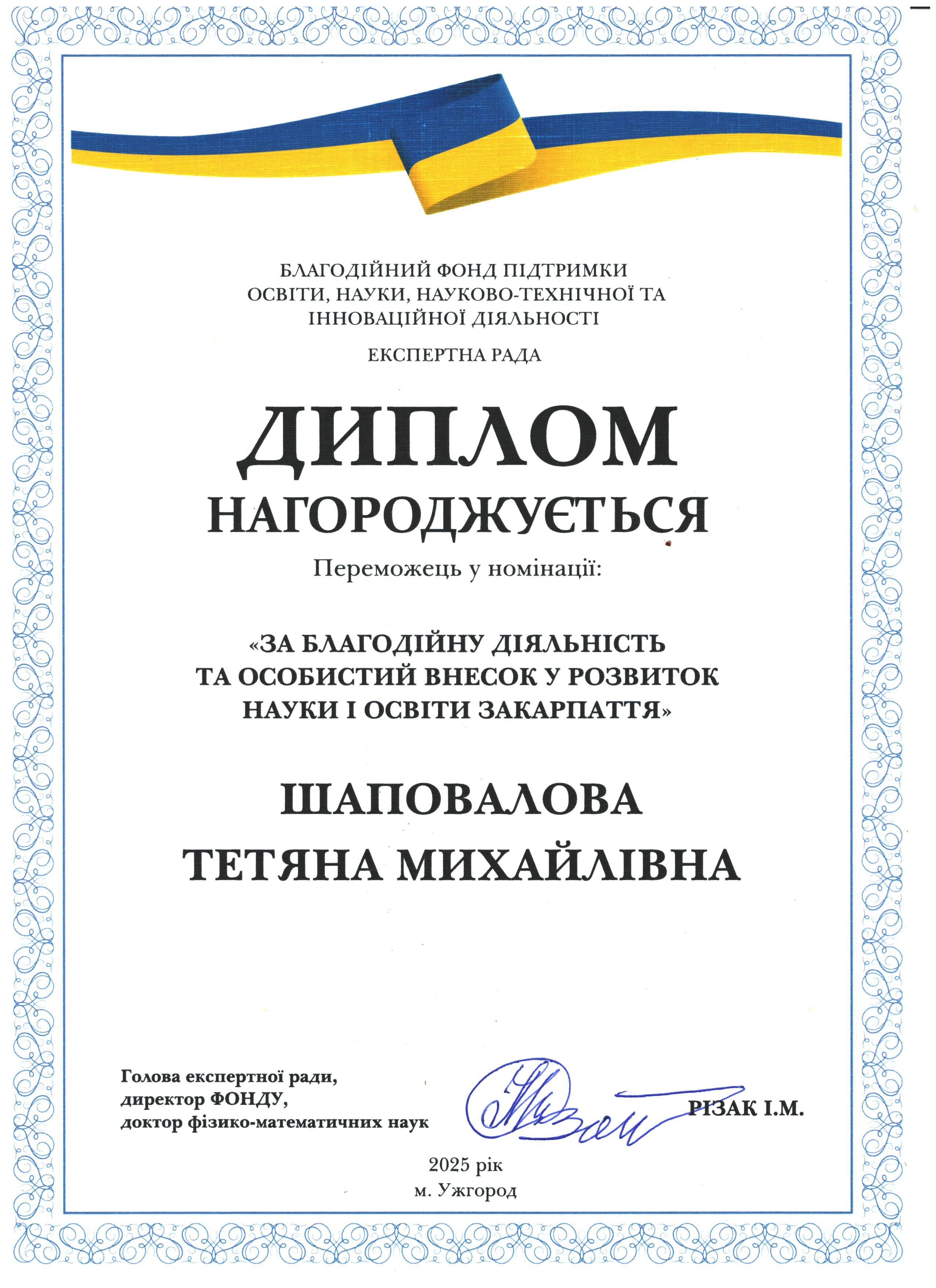 Дякуємо Тетяні Михайлівні Шаповаловій за багаторічну підтримку освіти і науки Закарпаття!