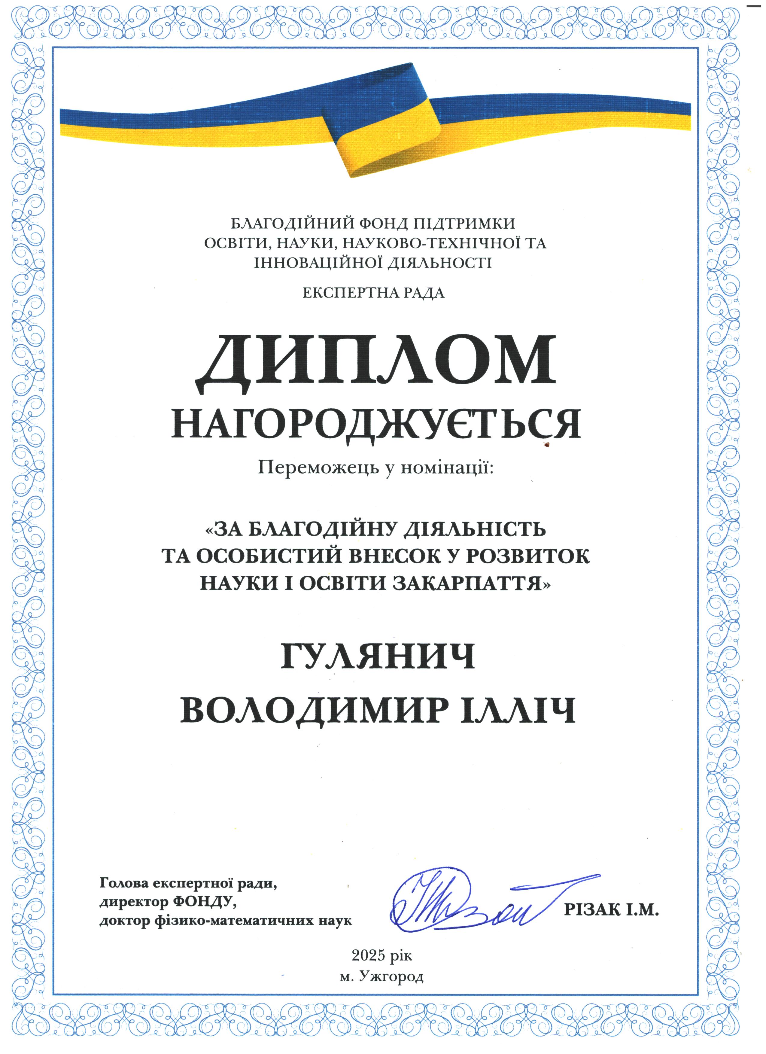 Дякуємо Володимиру Іллічу Гуляничу за багаторічну підтримку освіти і науки Закарпаття!