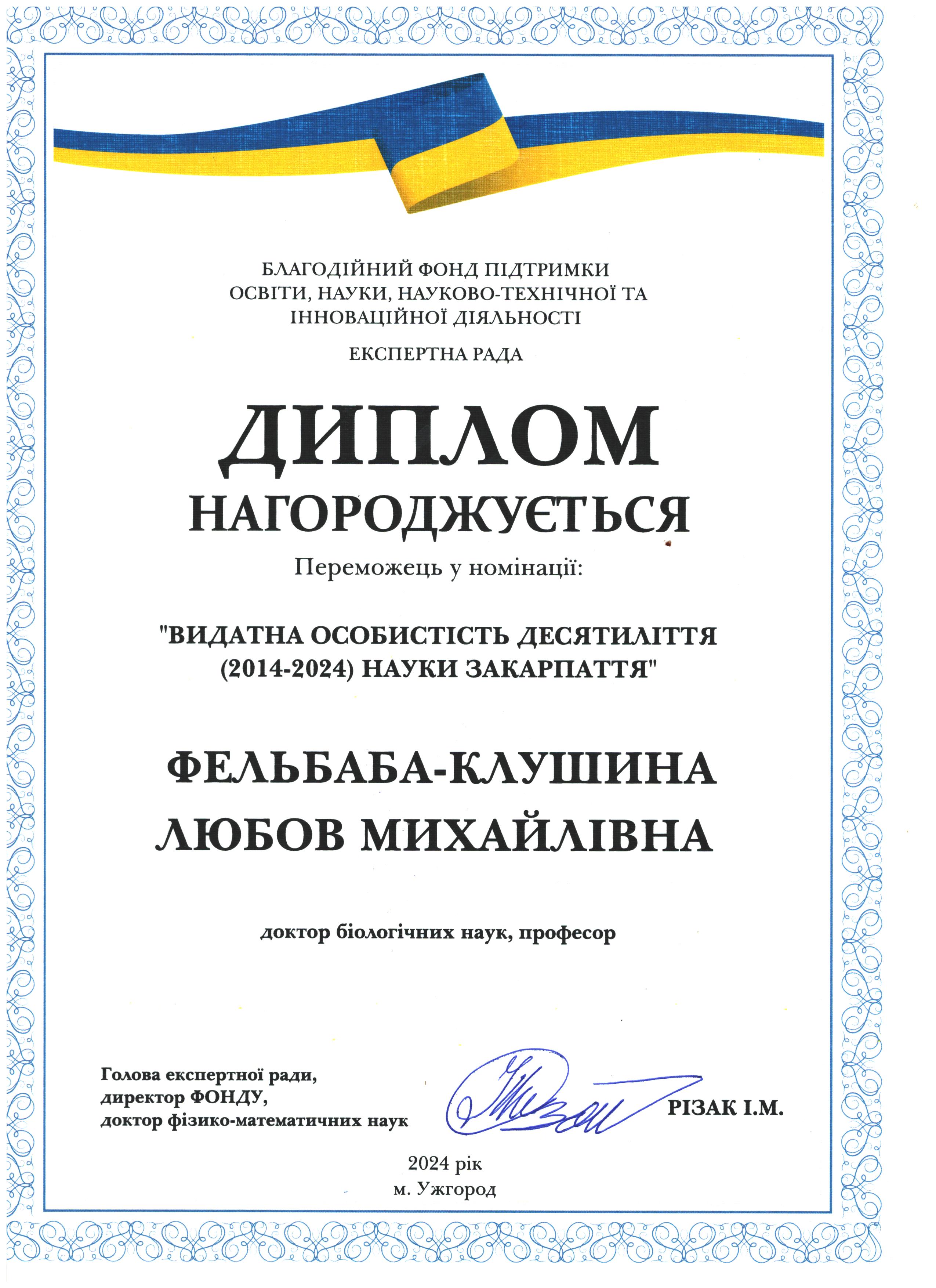 Вітаємо Любов Михайлівну Фельбабу-Клушину з перемогою у номінації "Видатна особистість десятиліття (2014-2024) науки Закарпаття"!