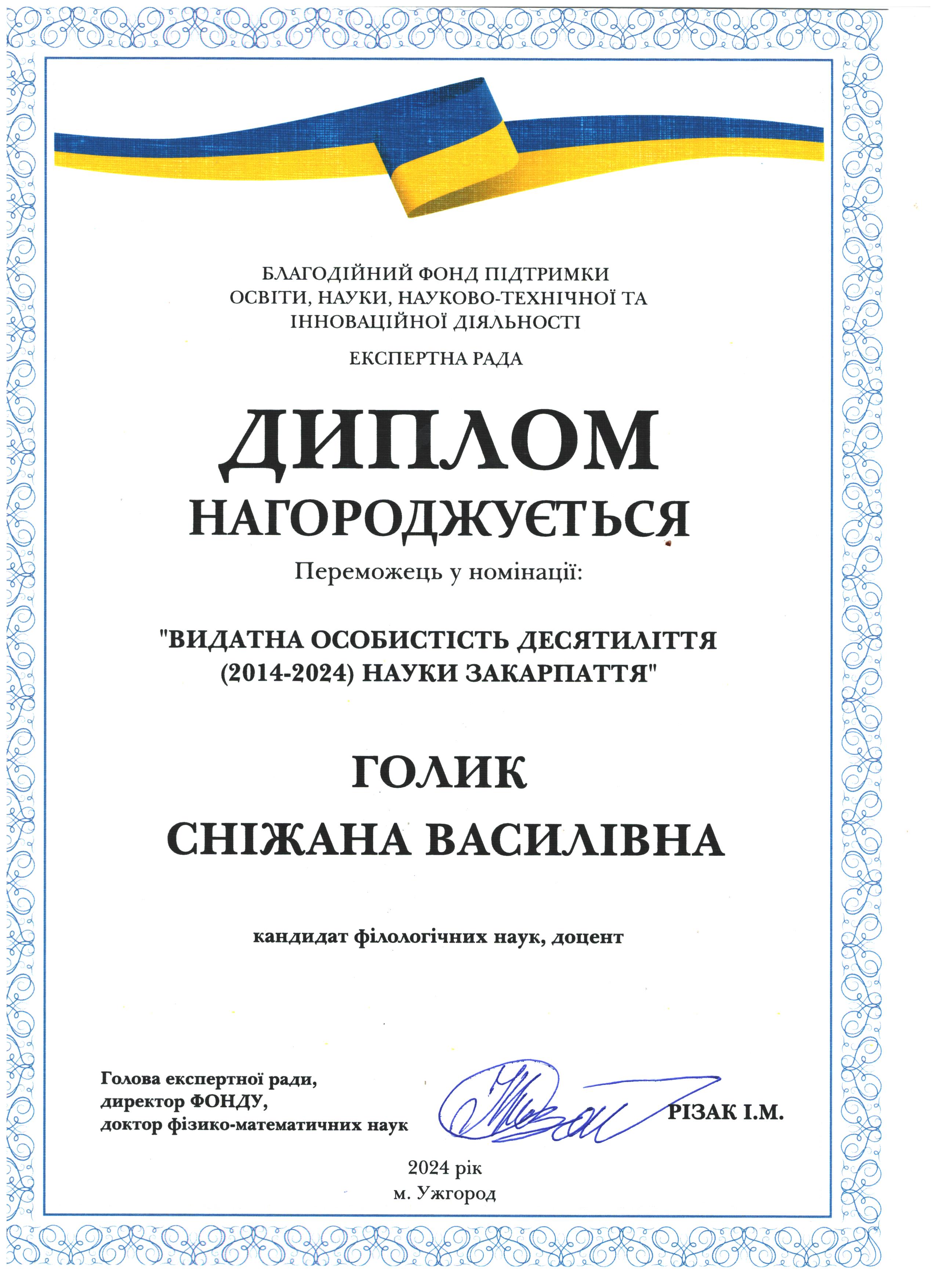 Вітаємо Сніжану Василівну Голик з перемогою у номінації "Видатна особистість десятиліття (2014-2024) науки Закарпаття"!