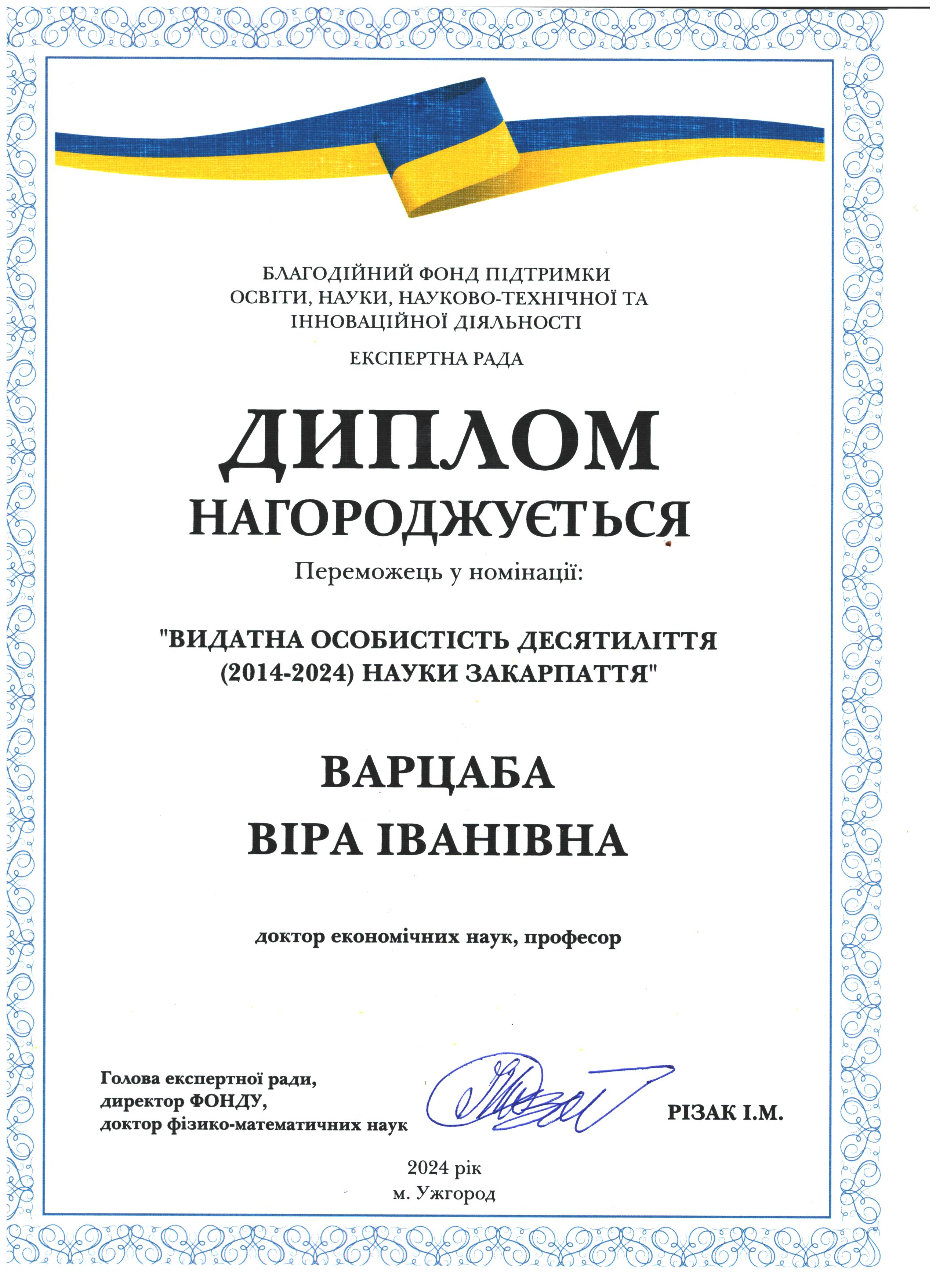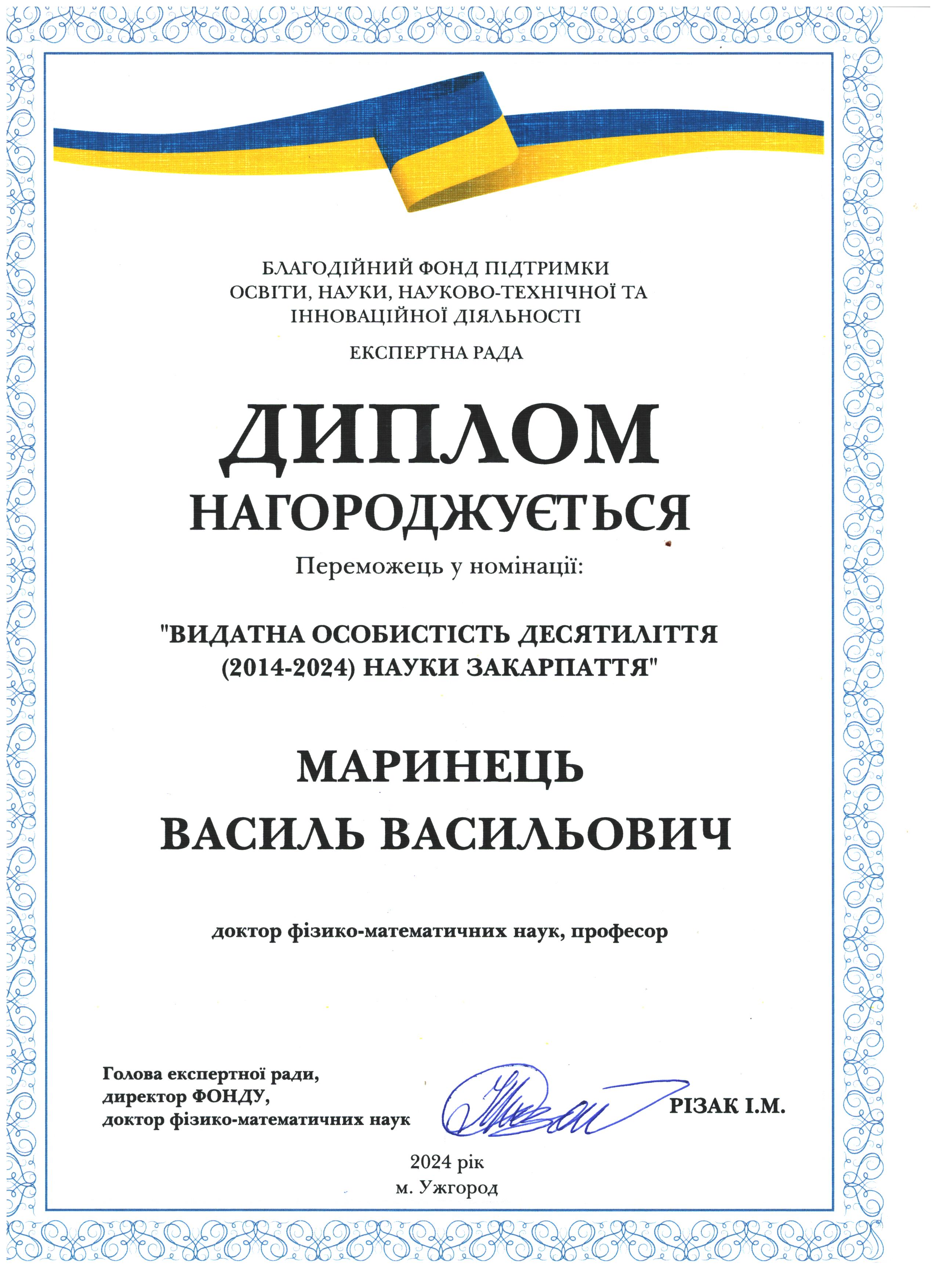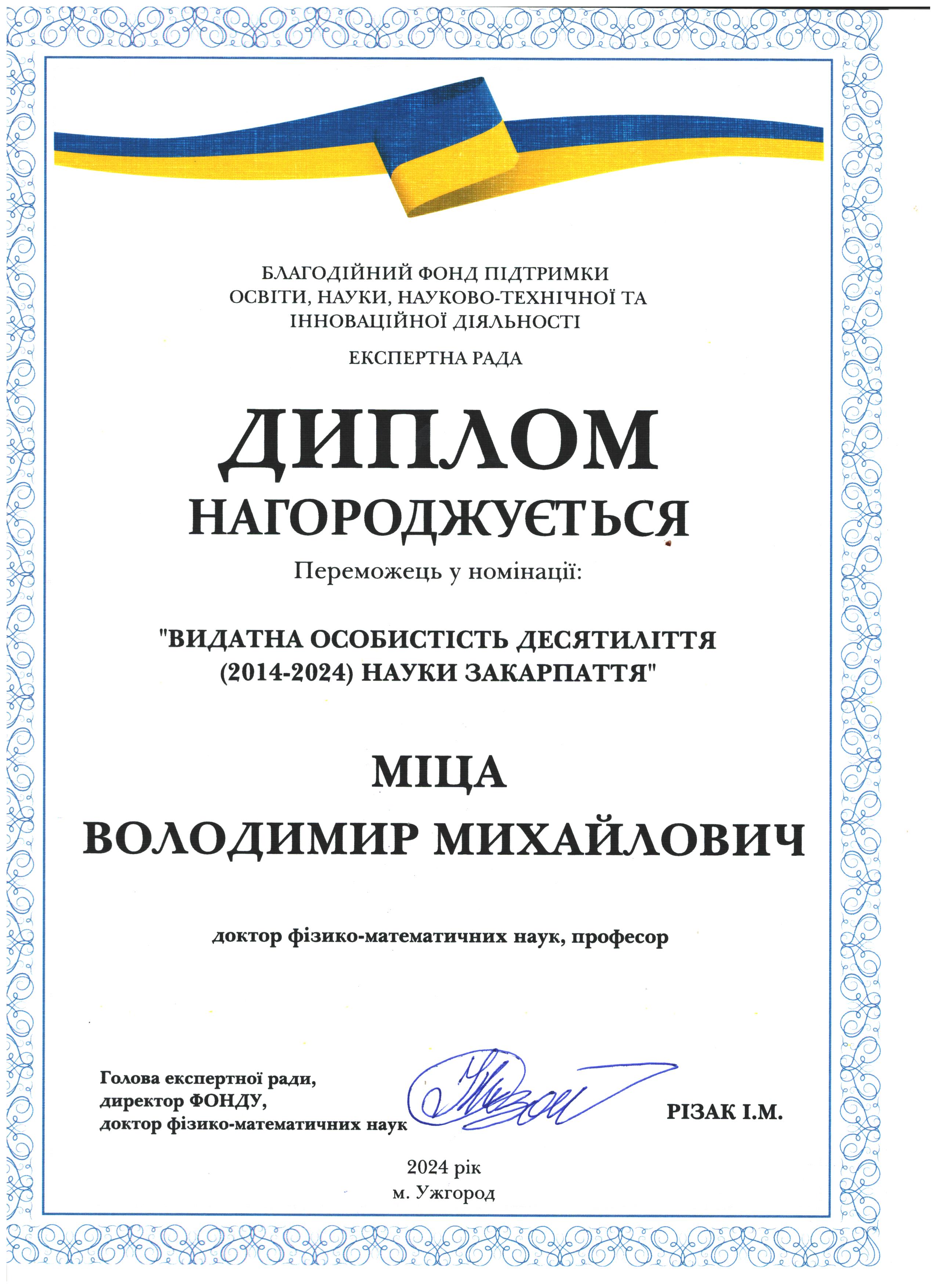 Вітаємо Миколу Васильовича Рішка з перемогою у номінації "Видатна особистість десятиліття (2014-2024) науки Закарпаття"!