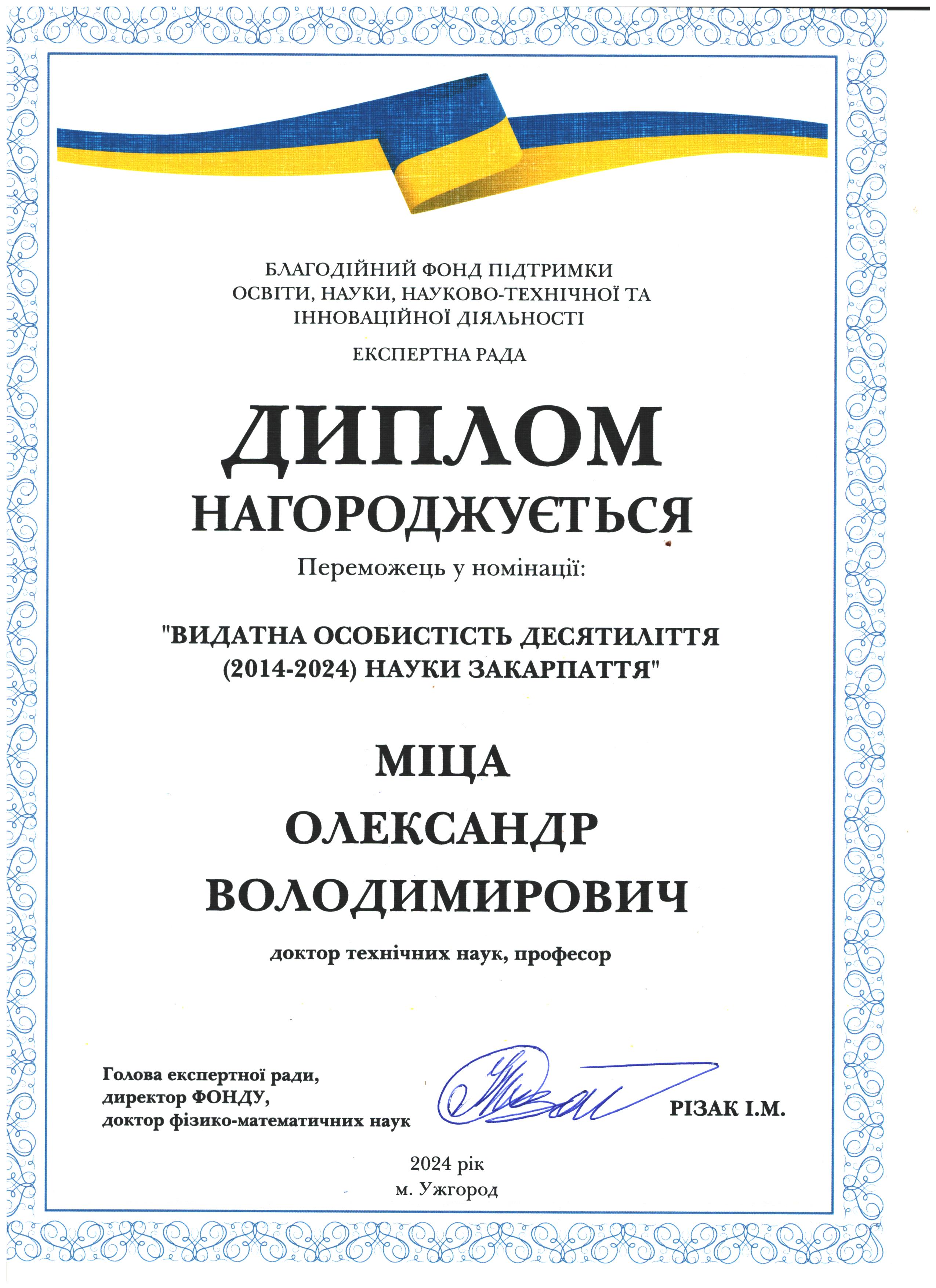 Вітаємо Олександра Володимировича Міцу з перемогою у номінації "Видатна особистість десятиліття (2014-2024) науки Закарпаття"!