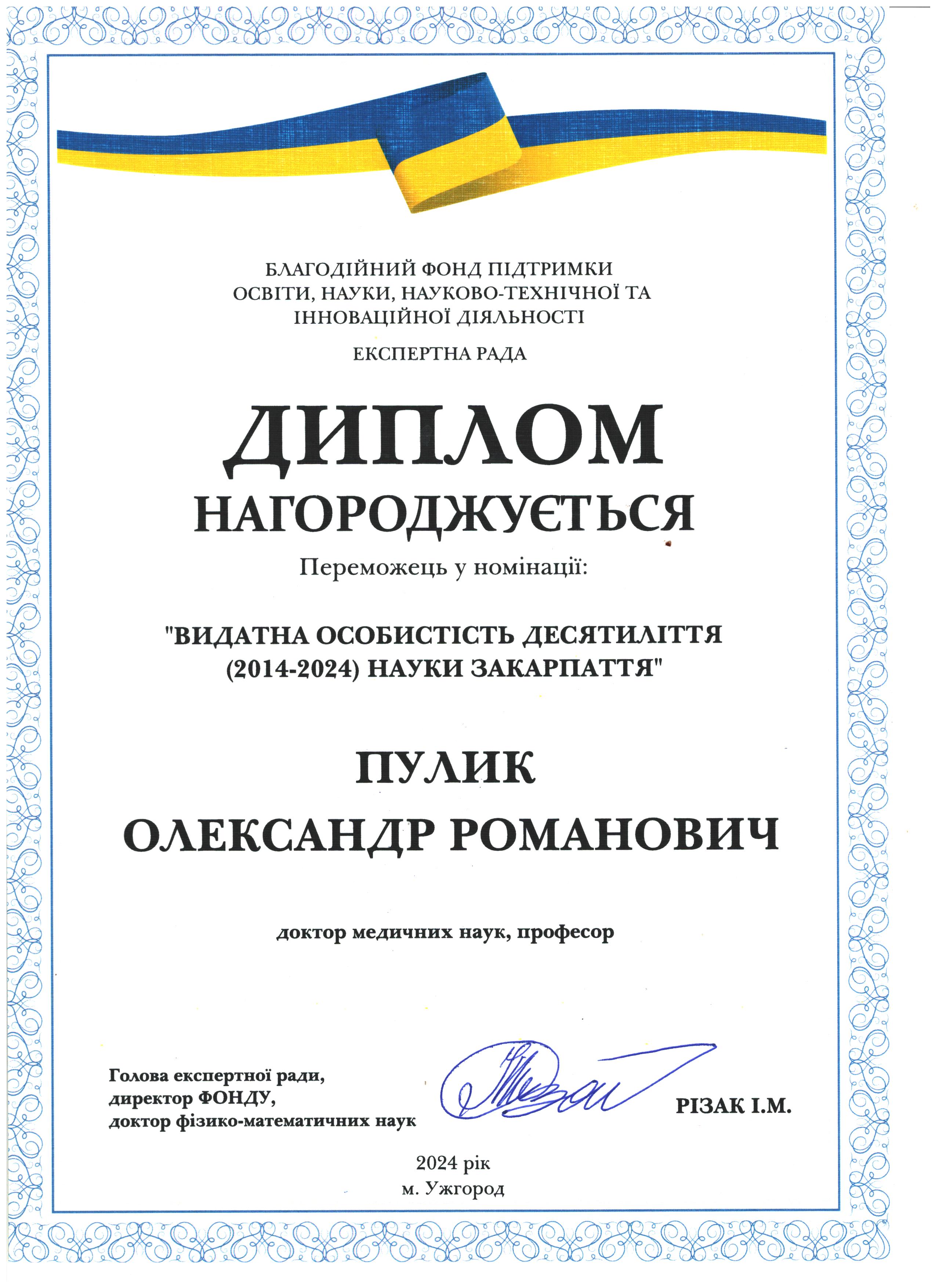 Вітаємо Олександра Романовича Пулика з перемогою у номінації "Видатна особистість десятиліття (2014-2024) науки Закарпаття!