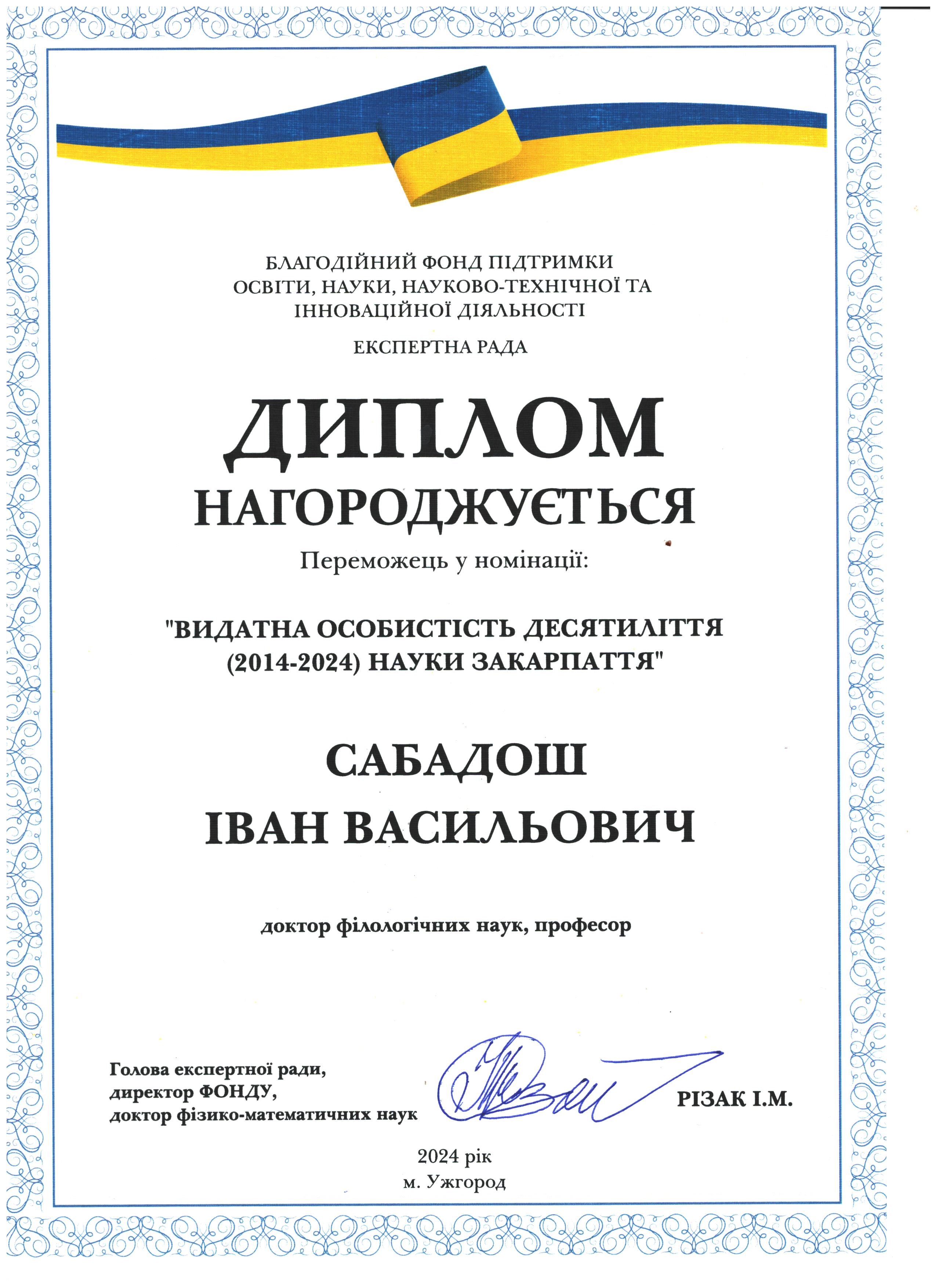 Вітаємо Івана Васильовича Сабадоша з перемогою у номінації "Видатна особистість десятиліття (2014-2024) науки Закарпаття!
