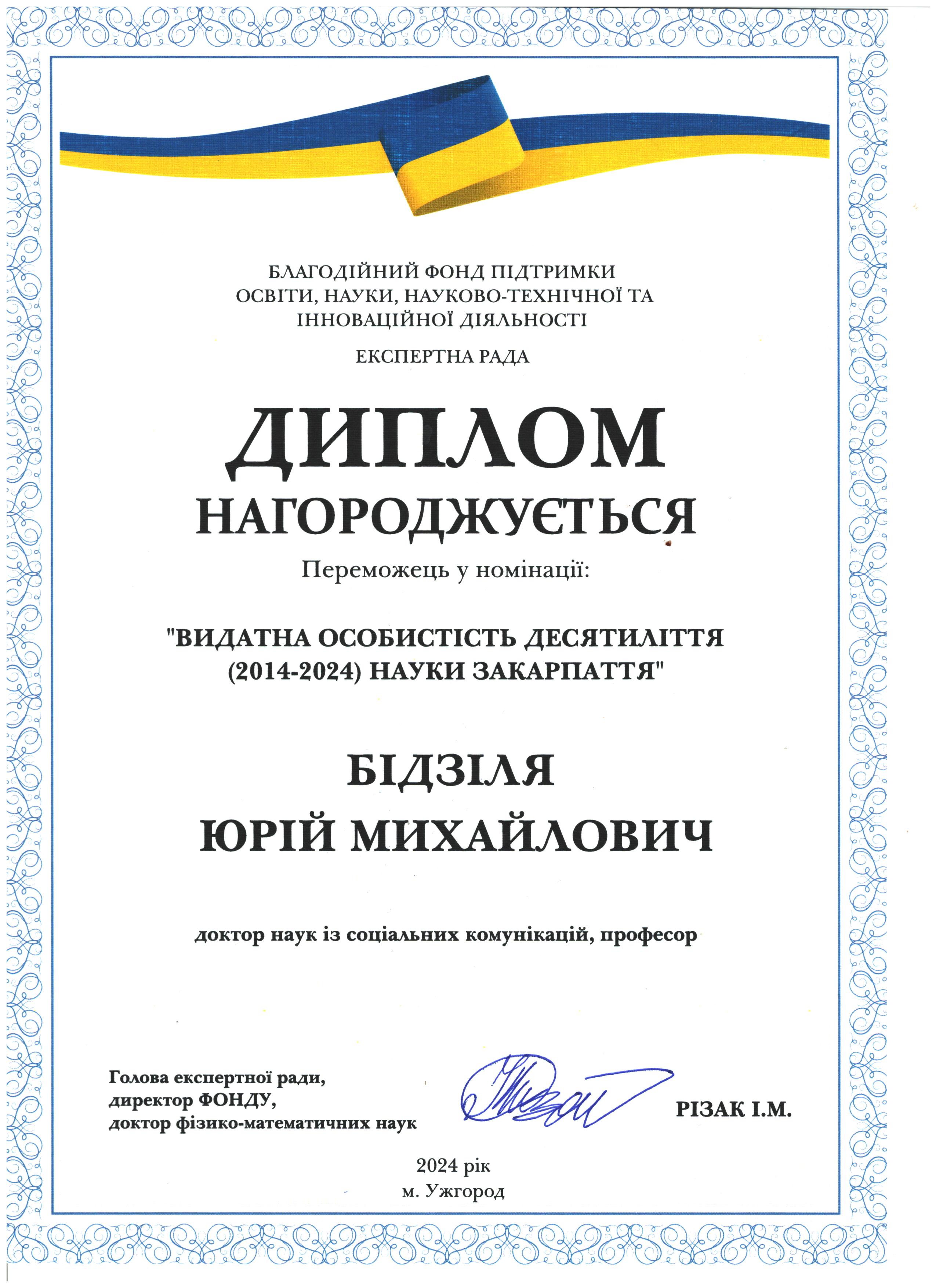 Вітаємо Юрія Михайловича Бідзілю з Перемогою у номінації "Видатна особистість десятиліття (2014-2015) науки Закарпаття!