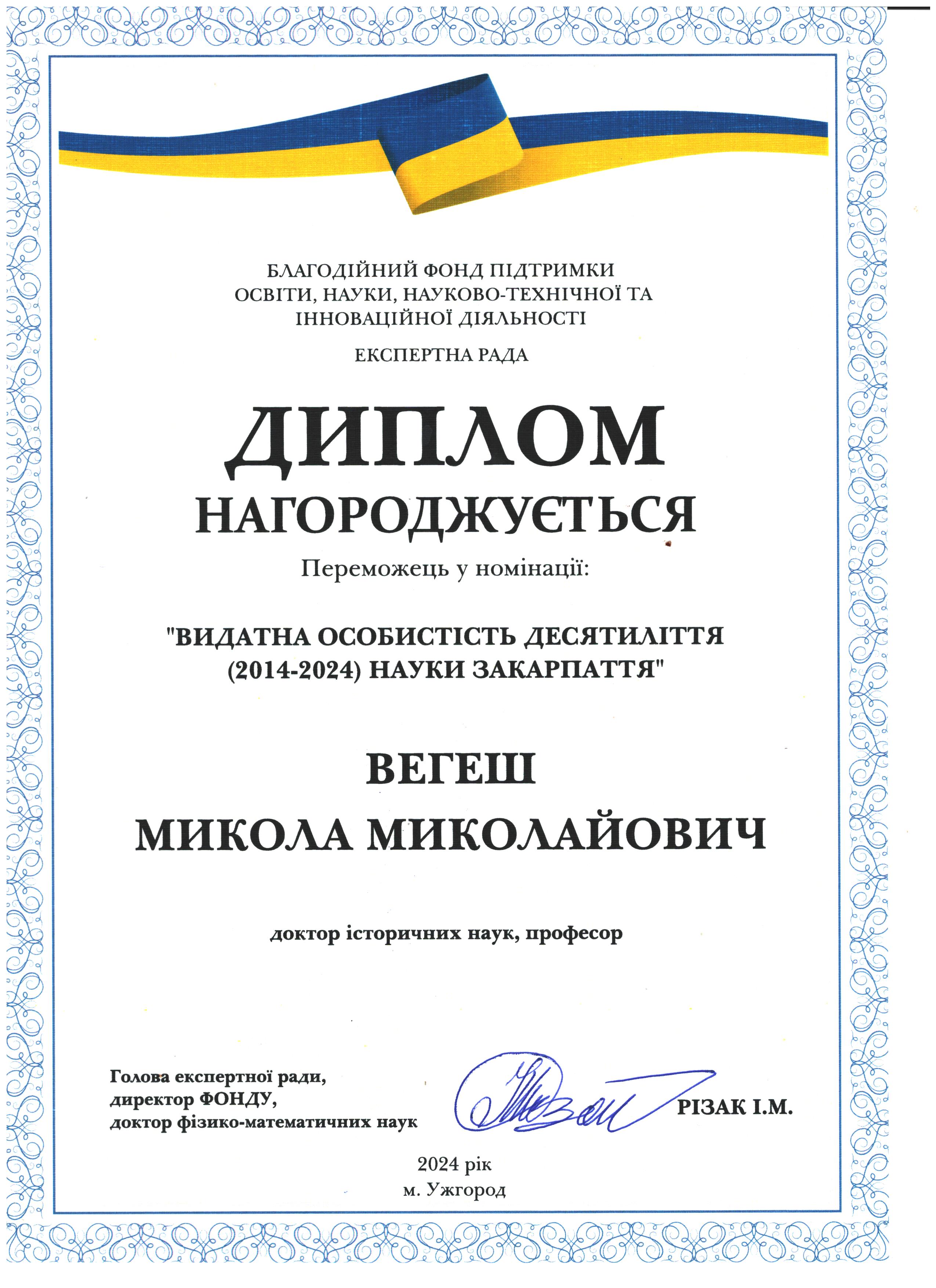 Вітаємо Миколу Миколайовича Вегеша з перемогою у номінації "Видатна особистість десятиліття (2014-2024) науки Закарпаття!