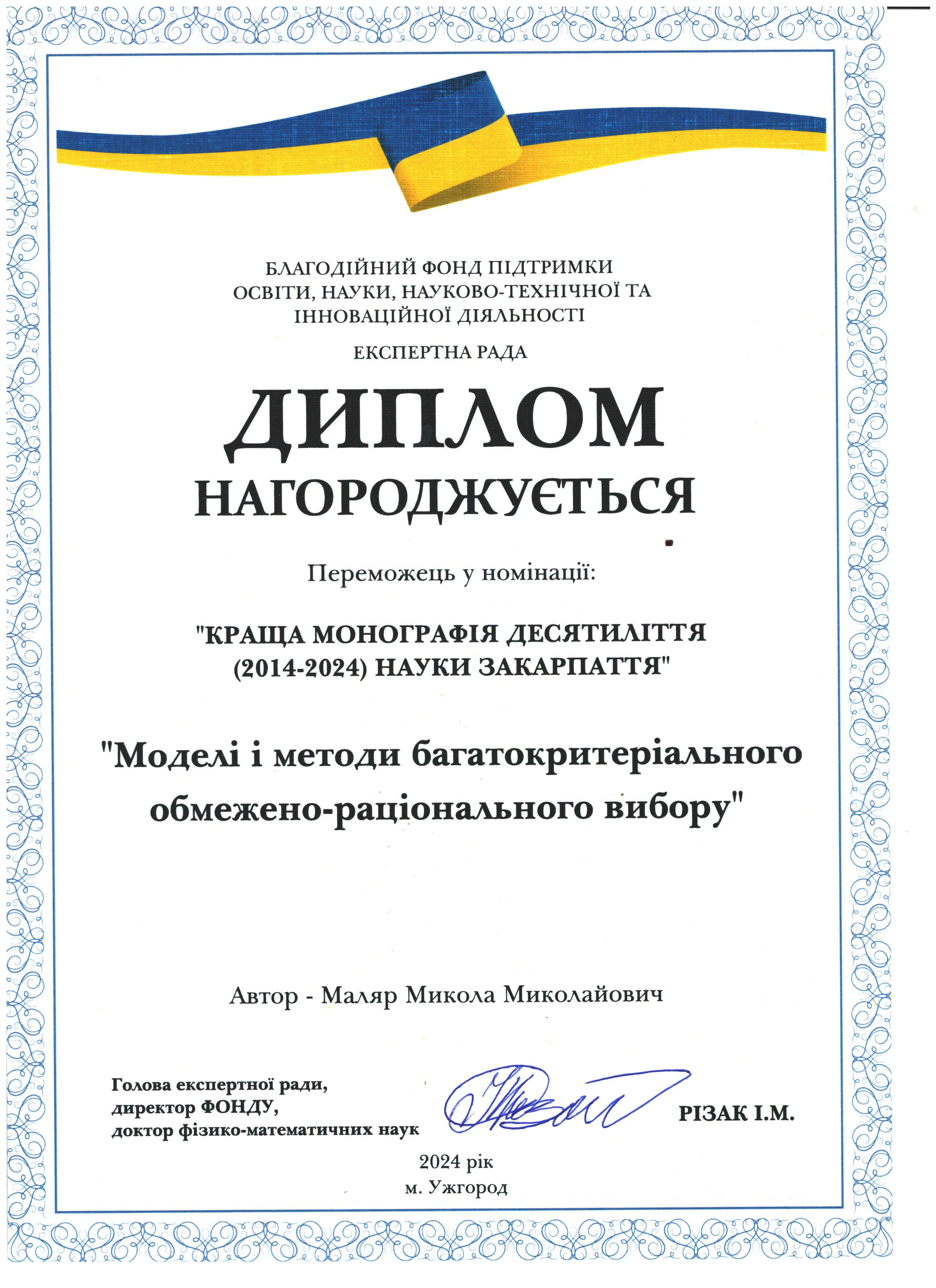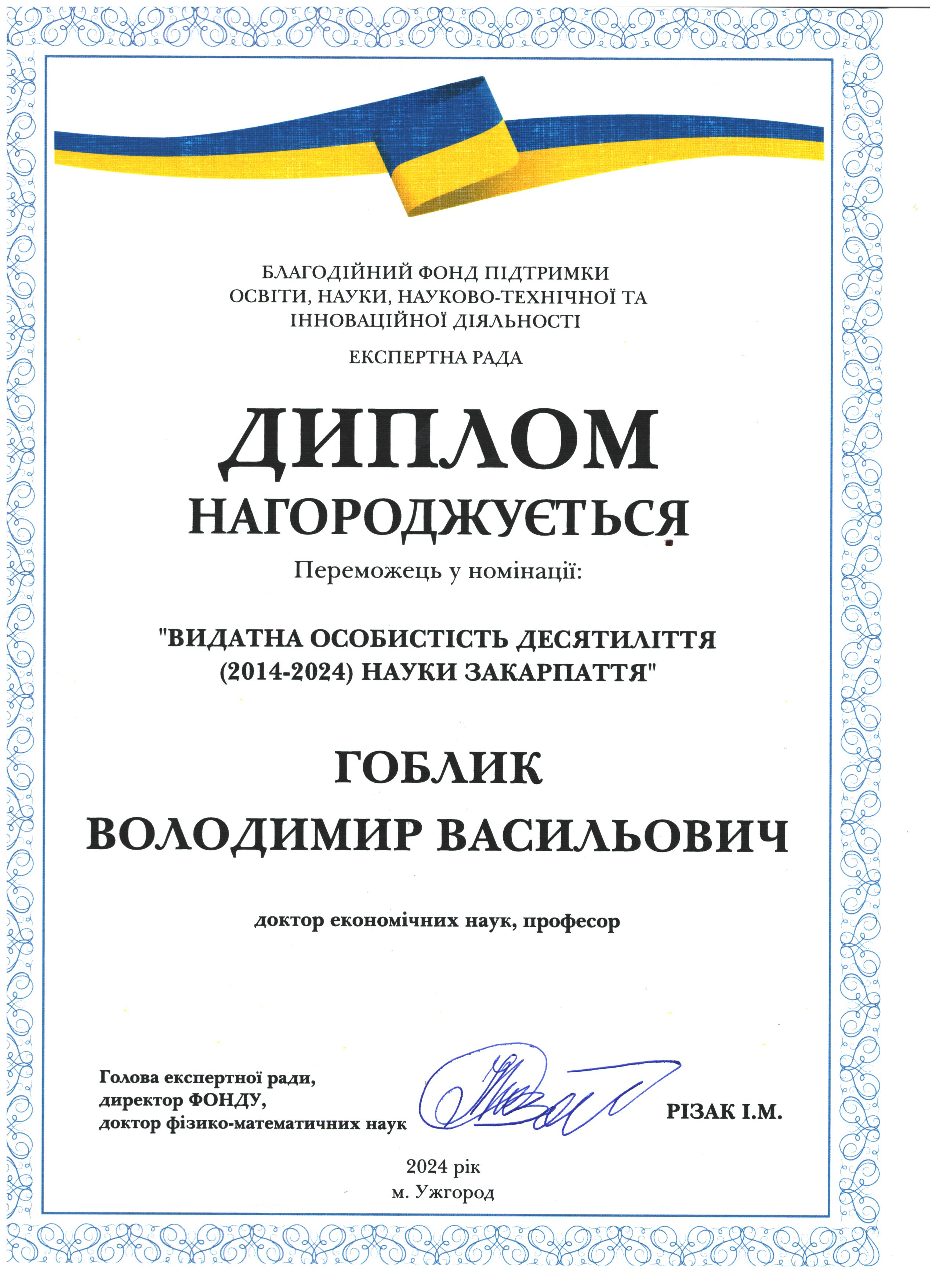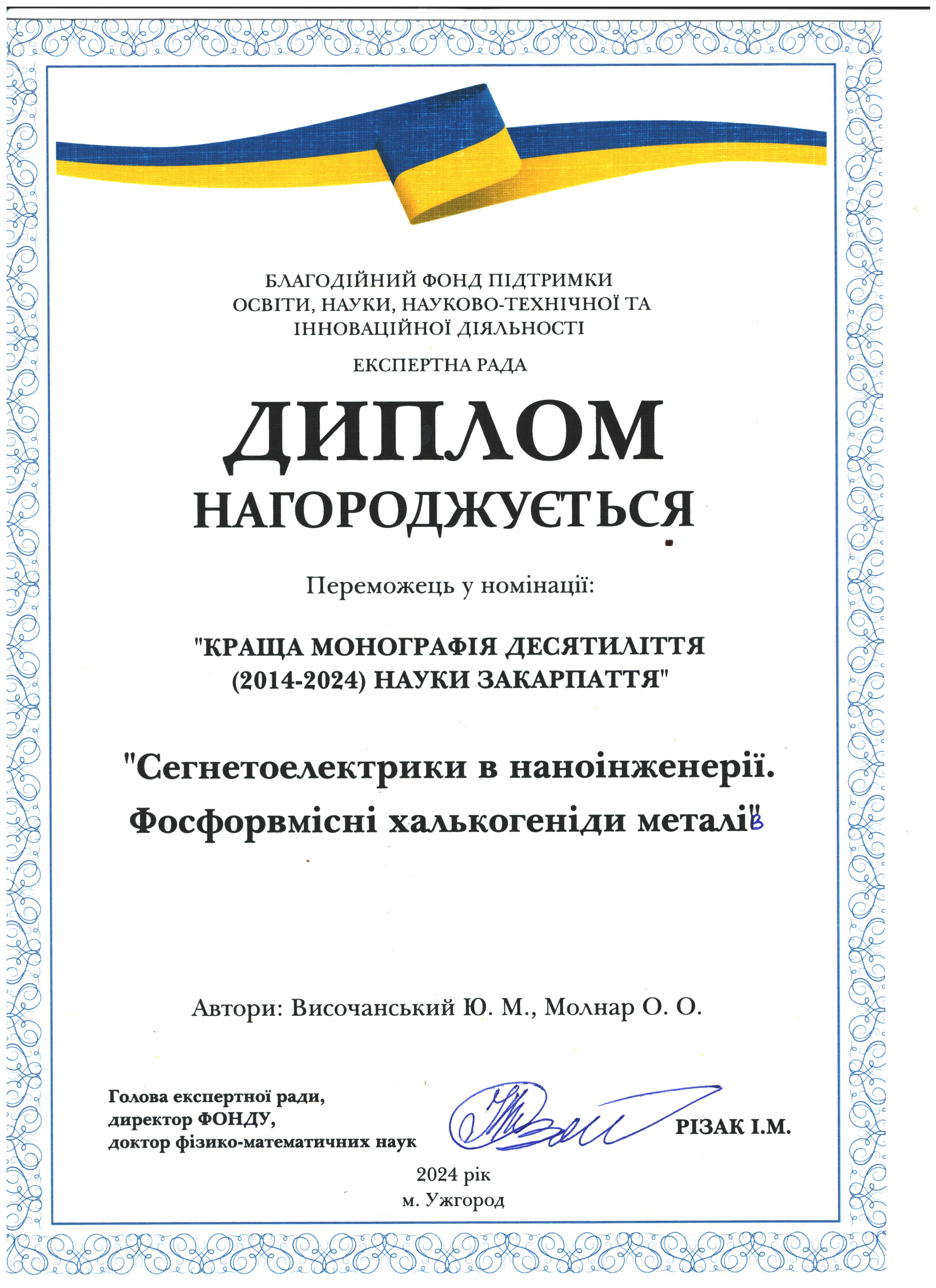 Іван Різак: дякую тобі, моя Галино Вікторівно, за витримку у нашій багатолітній боротьбі за честь сім'ї і не тільки, Рвдію за тебе і твої нові наукові успіхи у галузі органічної хімії завдяки підтримці колег з провідних вузів України. Тримайся!