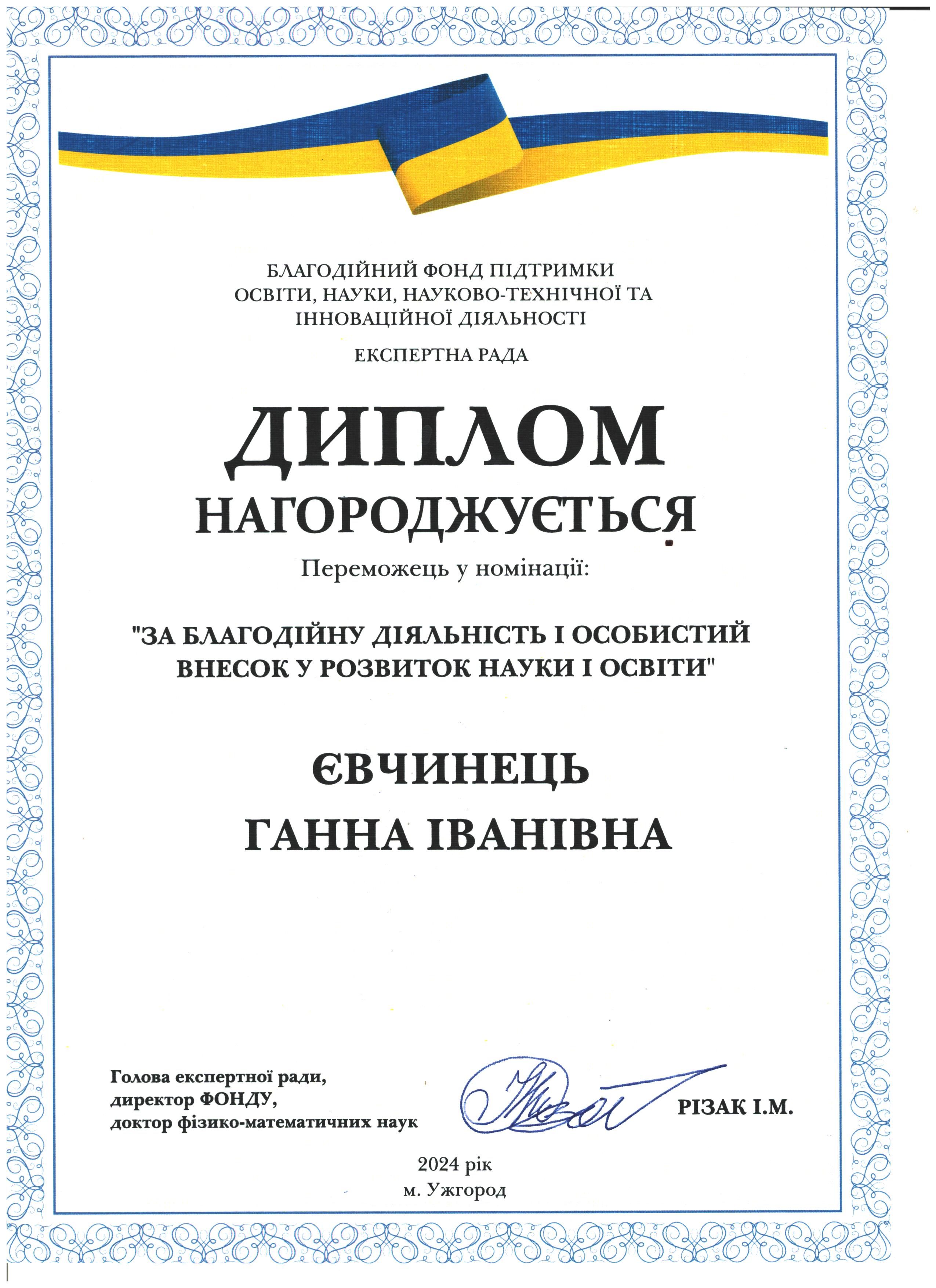 Дякуємо Ганні Іванівні Євчинець за сприяння розвитку науки і освіти Закарпаття!